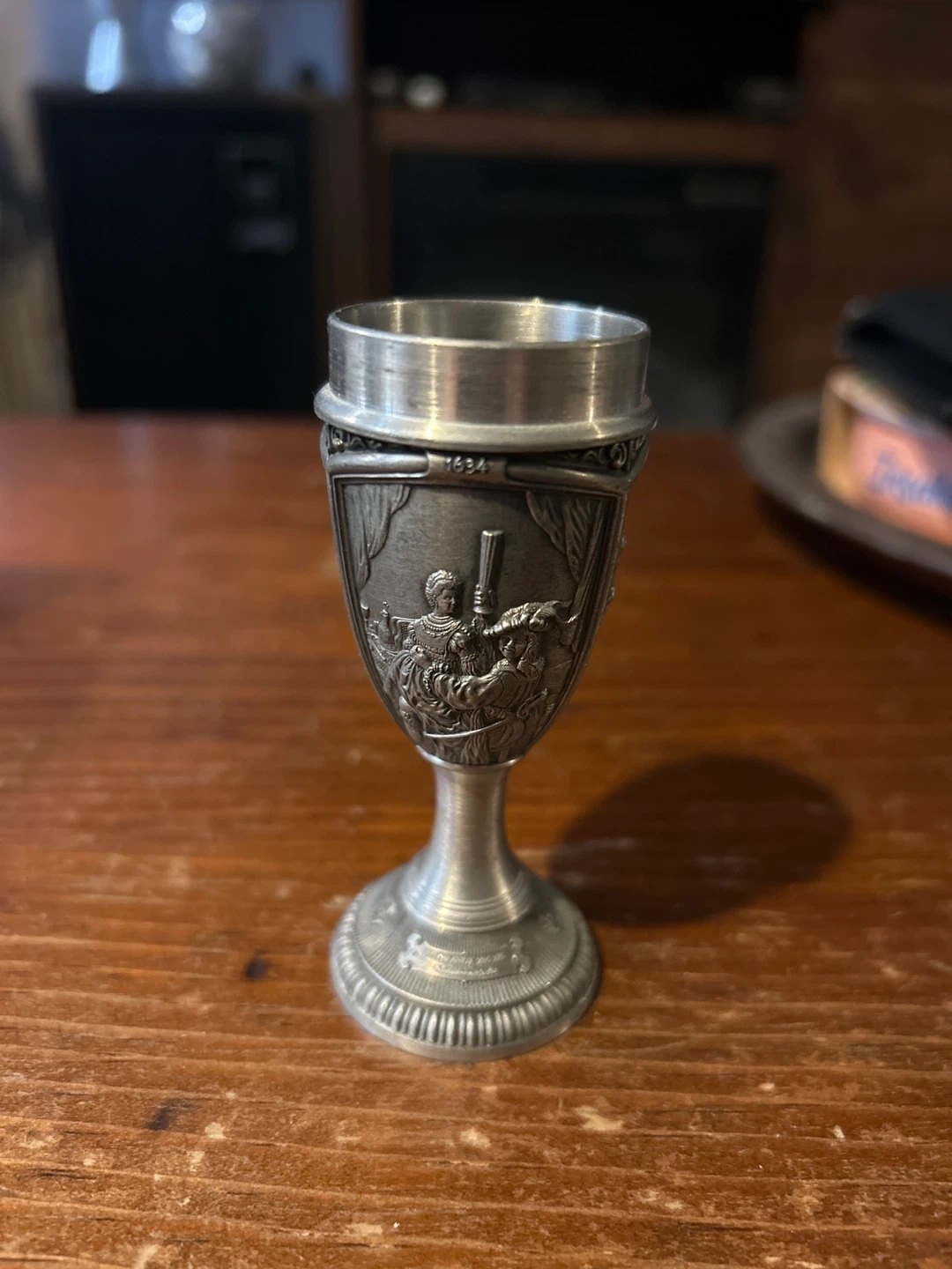 Vintage Metal Goblet with Engraved Scenes