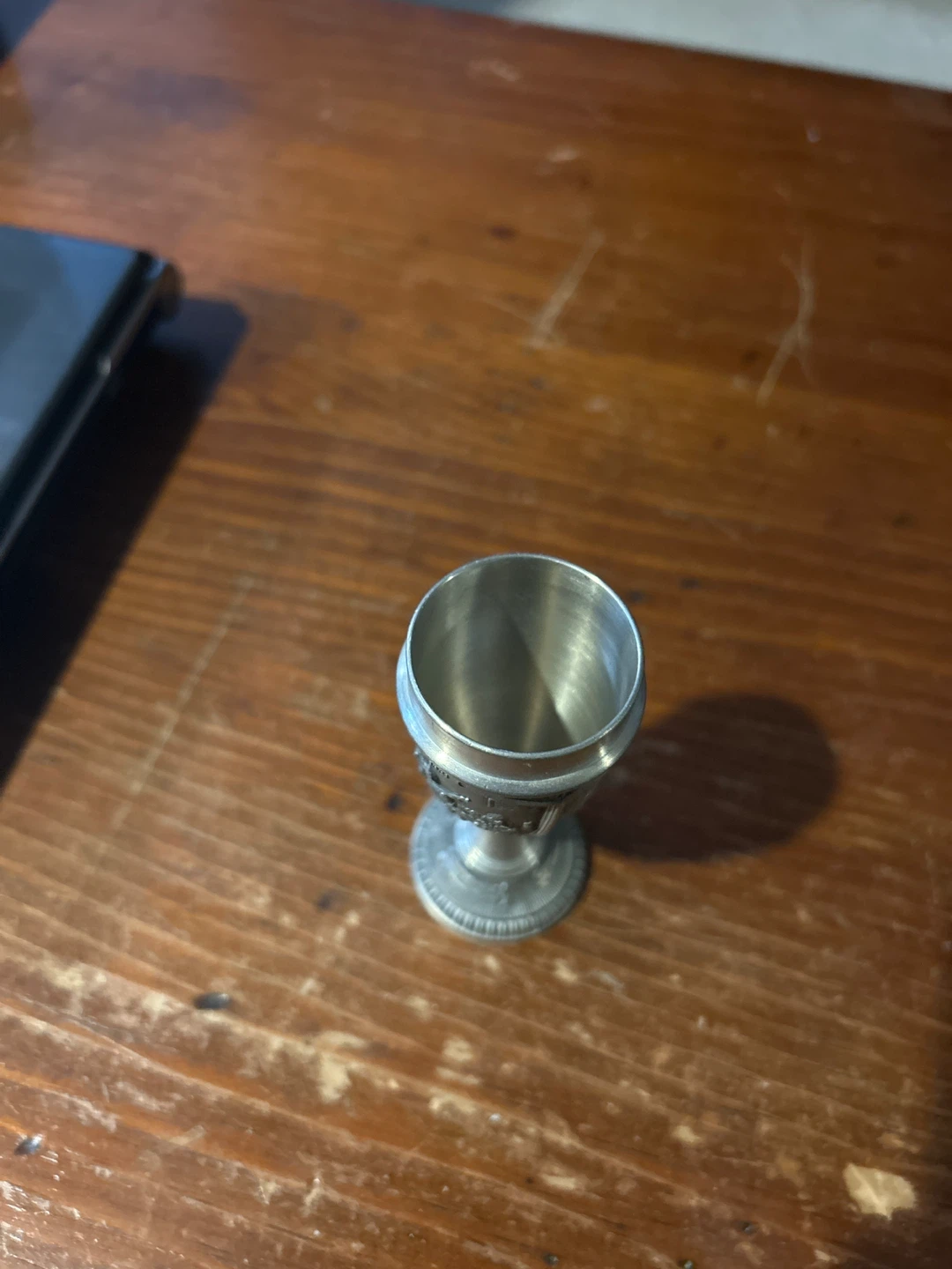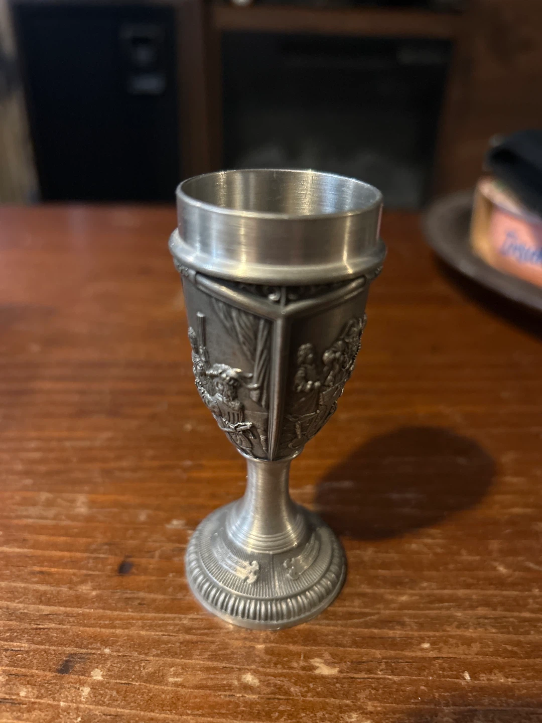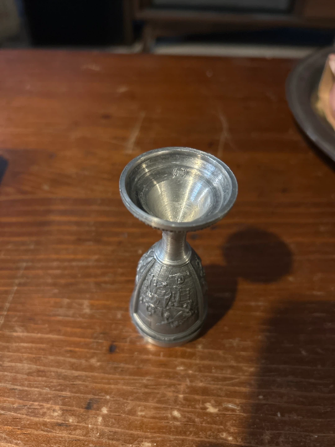 Vintage Metal Goblet with Engraved Scenes