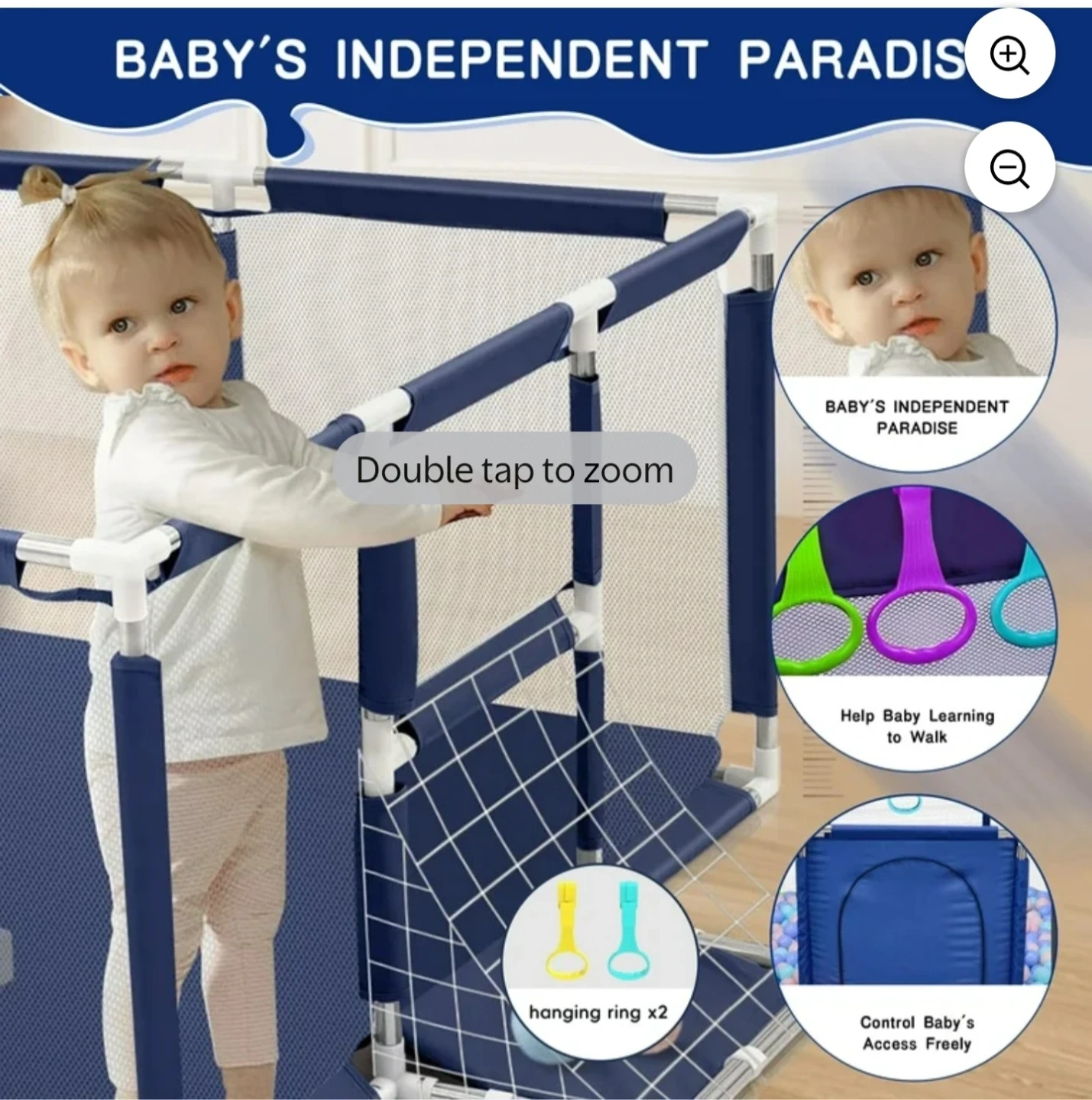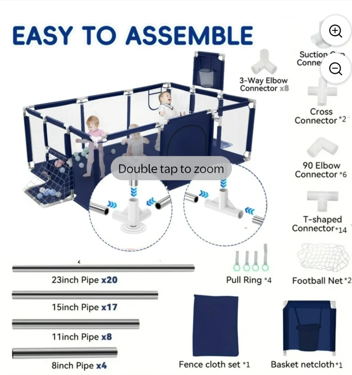 This playpen is made with BPA-free and phthalate-free materials, ensuring it's safe for your little one. It's easy to assemble and comes with various connectors for customization. Includes a football net and hanging rings.