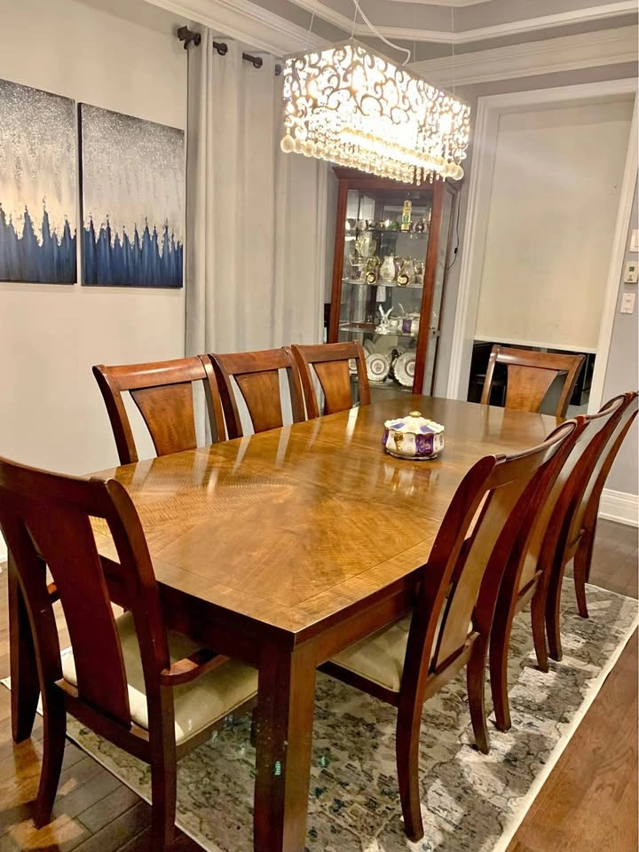 Can adjust length to accomodate 6 or 8 people. In good condition! Dimension is 98” x 45”.