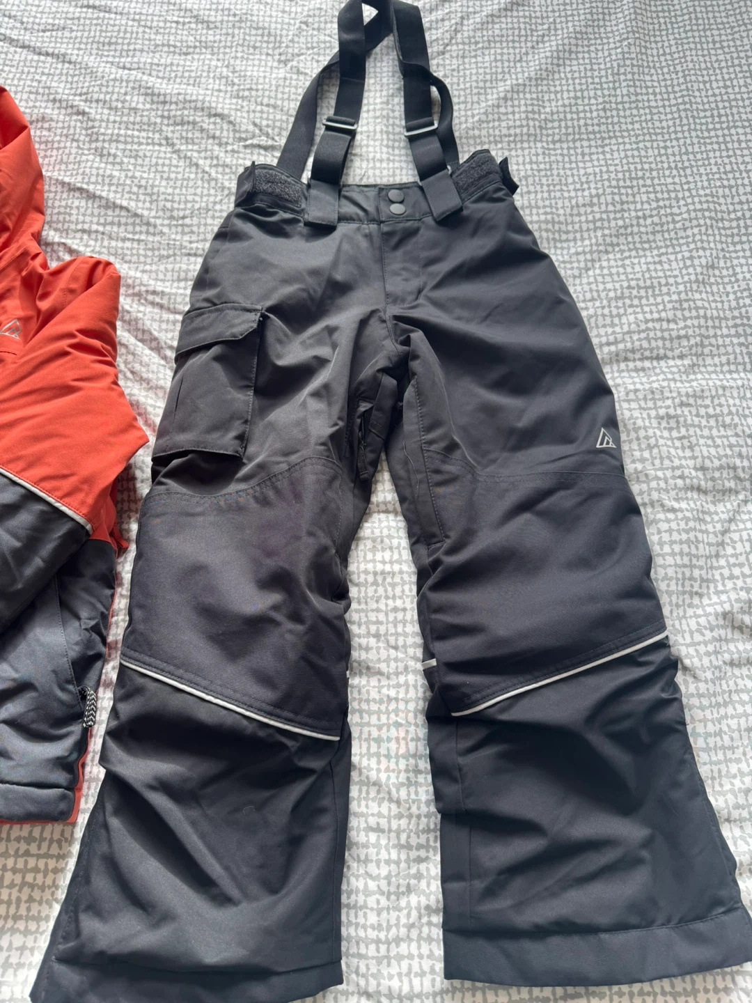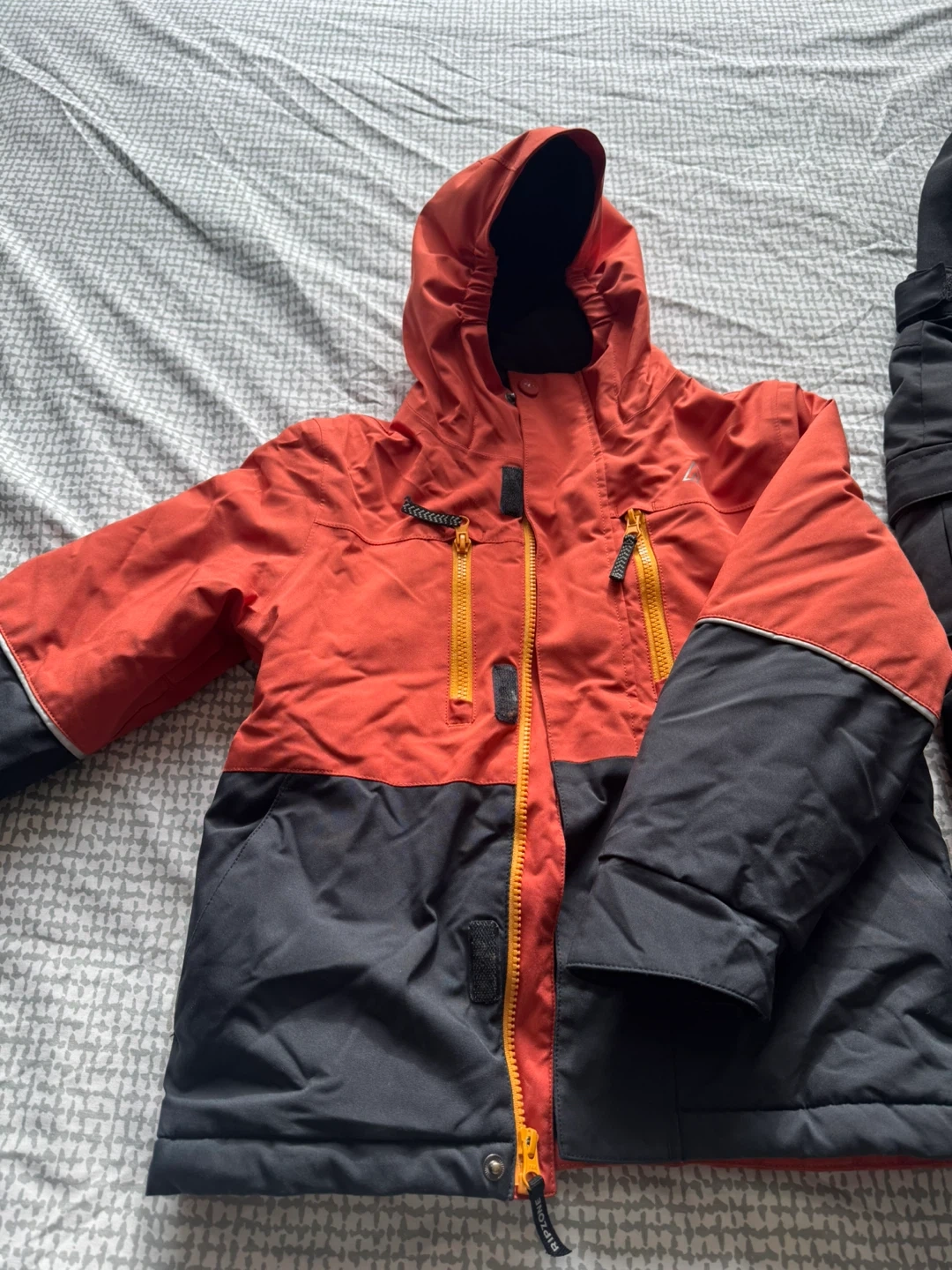 Selling a Ripzone ski jacket and pants set in size XS. The jacket is orange and black and the pants are black. Perfect for hitting the slopes. Great for 6-8 ages . Just worn 5 times