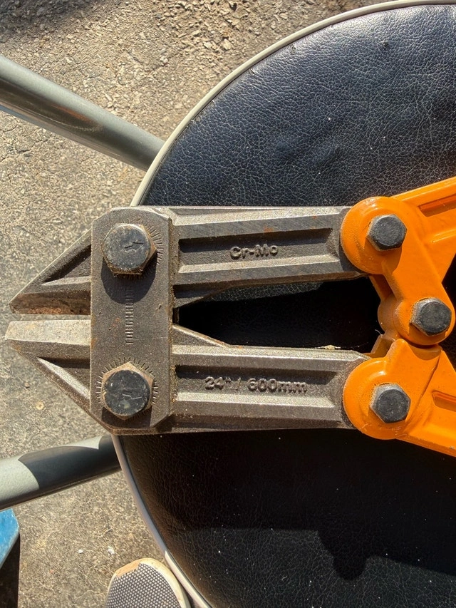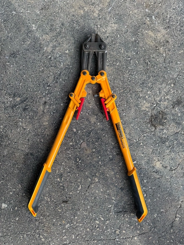 These Longreach 24" bolt cutters are in used condition and ready for your next job. The blades show signs of wear, but they still have plenty of life left in them. Size: 24 inches. Material: Chrome-Molybdenum Steel (Cr-Mo). Looking to snip some bolts? Either way, these bolt cutters are ready to help. Please note that if the ad is still up, the bolt cutters are available. Cash accepted.