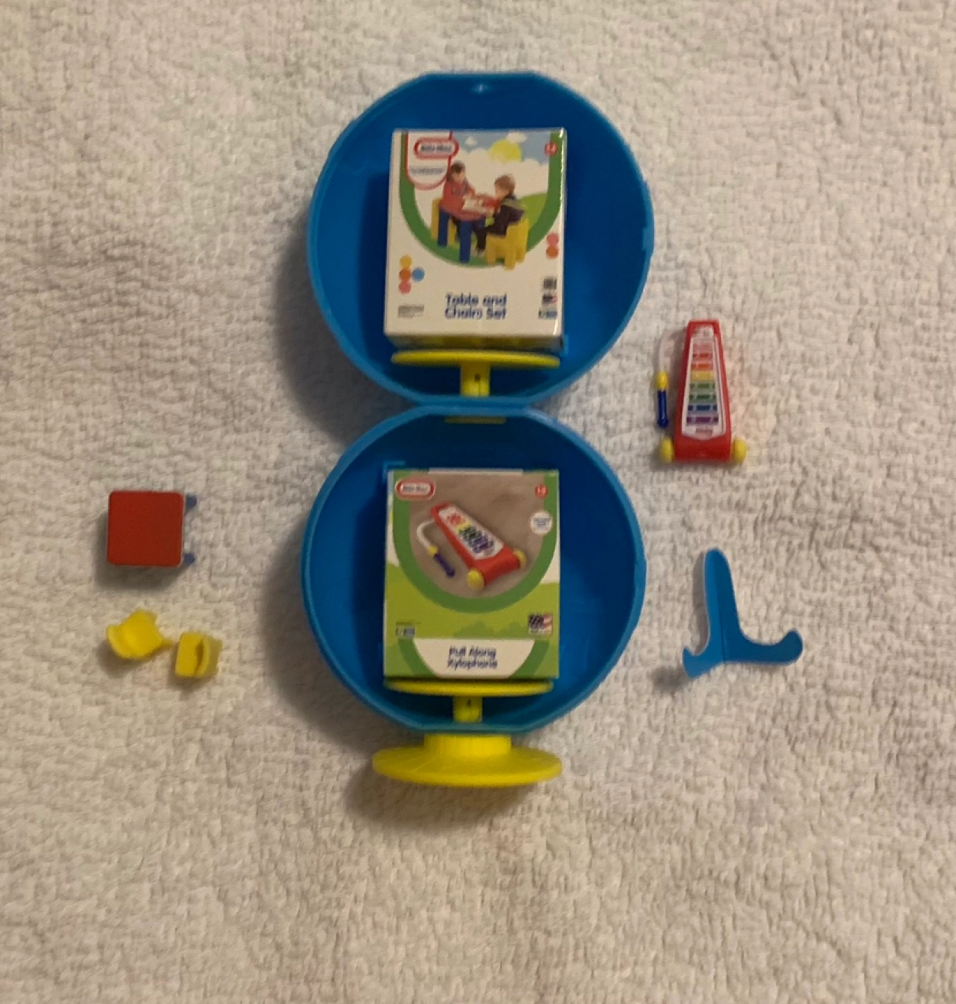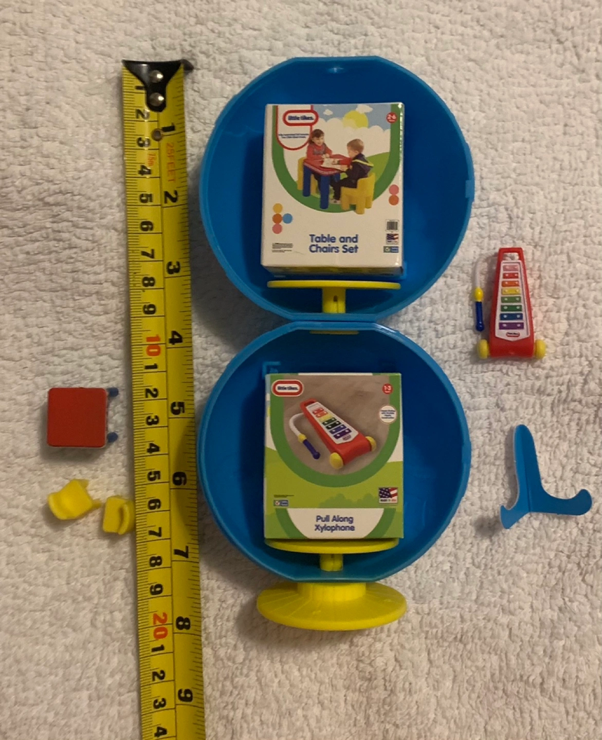 Little Tikes Miniverse set includes a table and chairs, a pull along xylophone