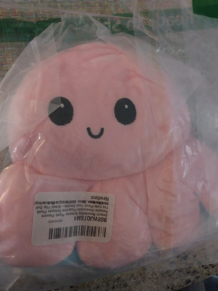Plush toy shaped like an octopus. Reversible, with a smiling face on one side. Double-sided flip doll.