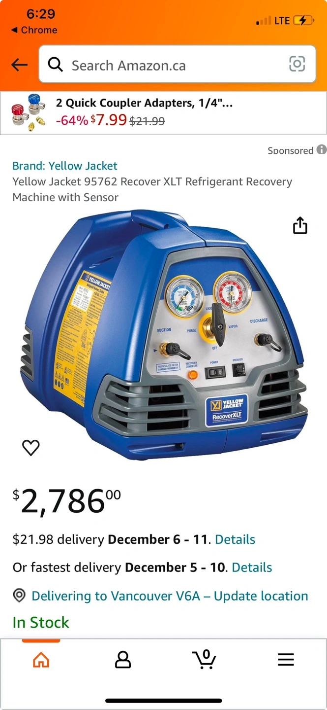 Yellow Jacket Refrigerant Recovery Machine, with sensor. Includes gauges.