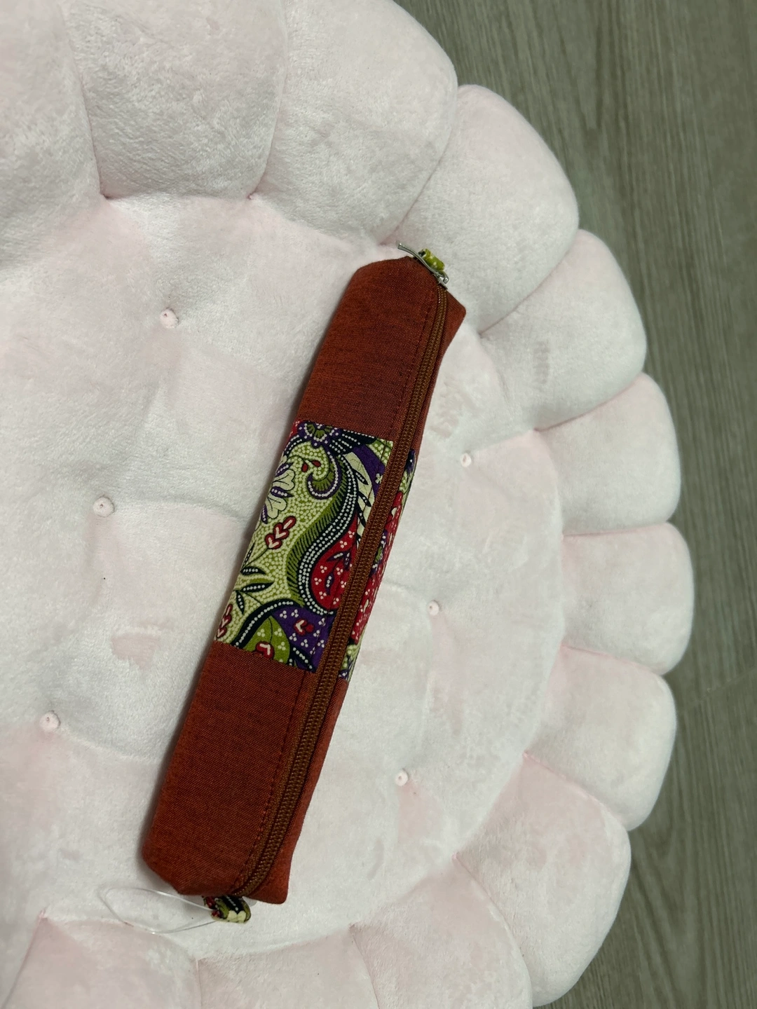 158Small zippered pencil case. Made with a beautiful patterned fabric. Perfect for holding pencils, pens, and other small items.