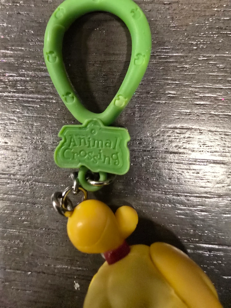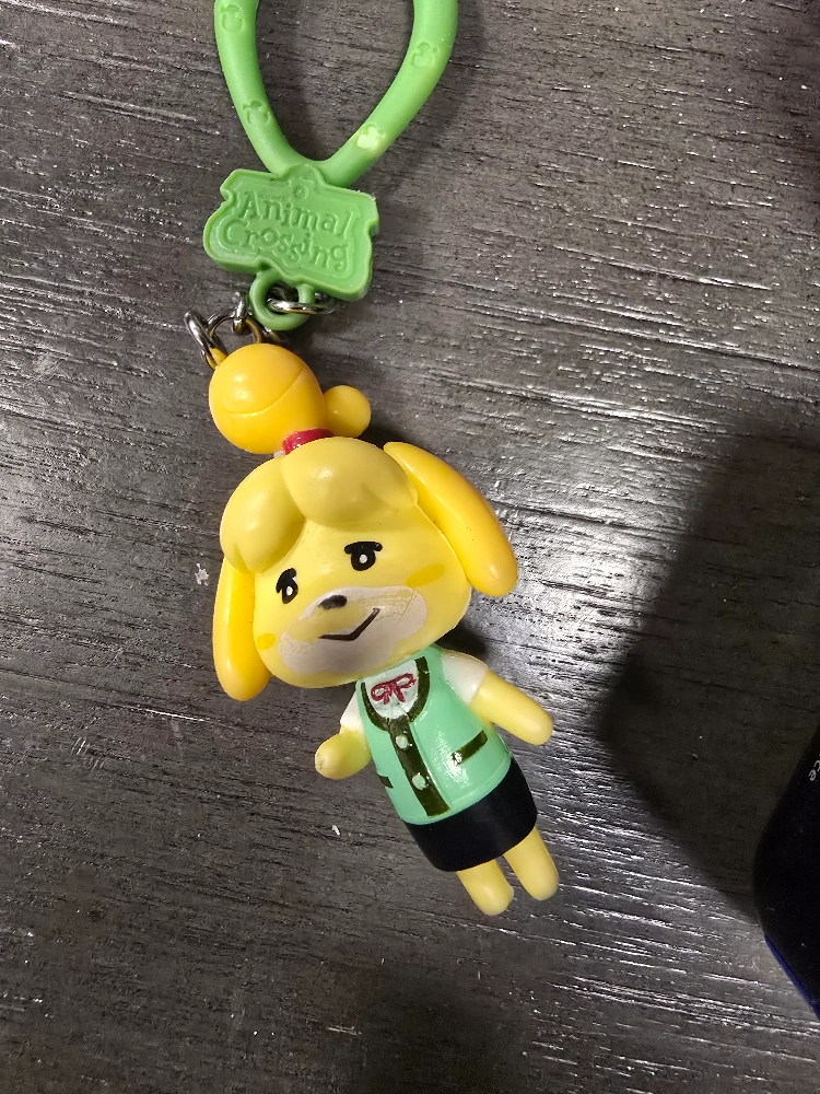 134Isabelle keychain with green loop for hanging on bags or other items. Figure is approximately 2 inches tall.