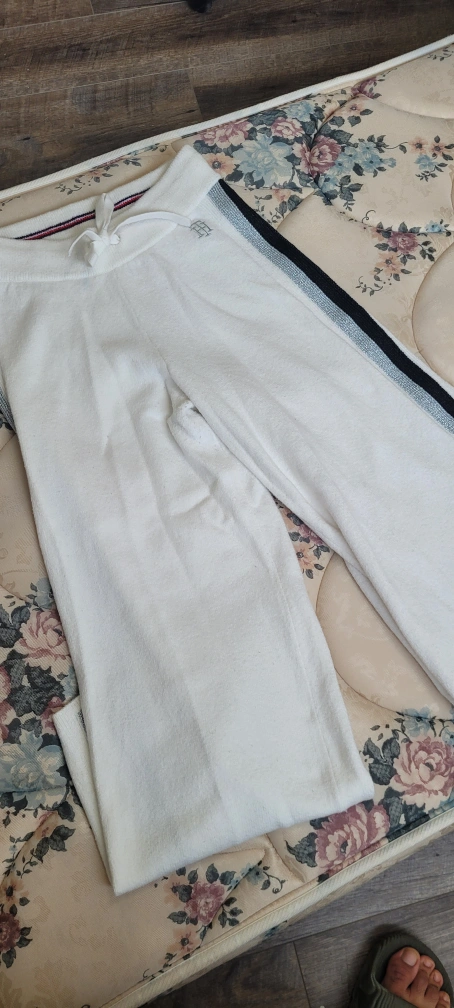 White track pants with side stripes. Drawstring waist. :) can deliver within London for 5 CAD.