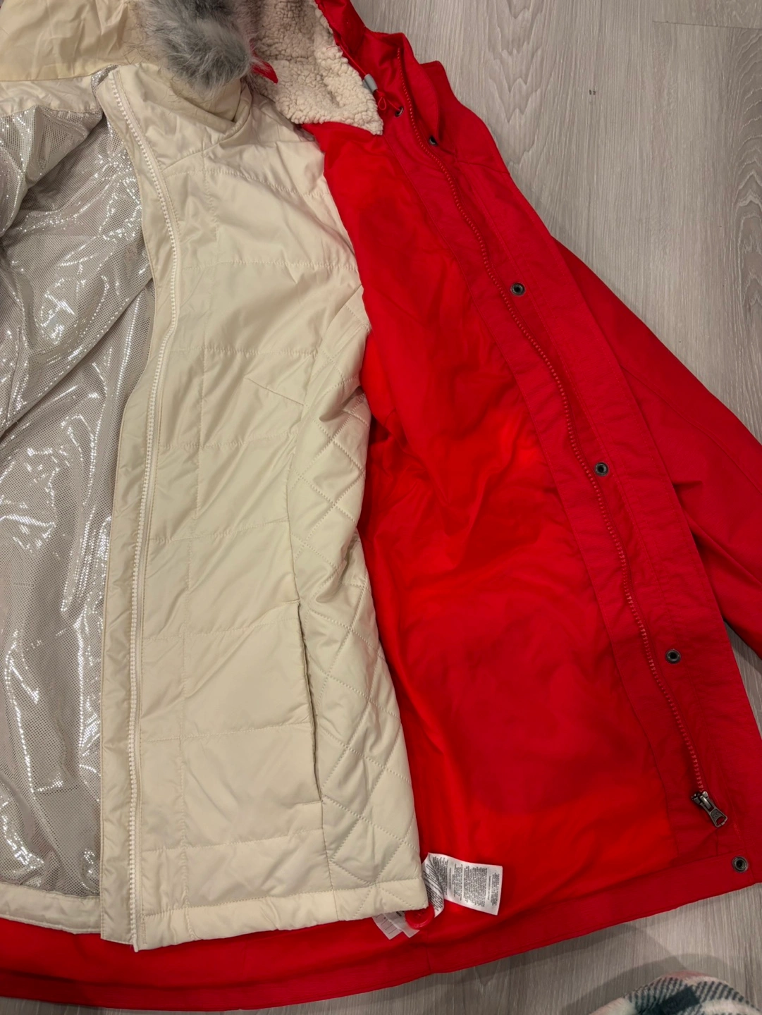 923Smoke free pet free home Pick up only. Yonge & Steeles Item brought to driveway Get ready for Winter! I really love this jacket, very stylish and warm. I’m just not a red person. Like new Columbia Carson Pass Interchange Jacket in XS. Features: Omni heat interior (silver part) double zipper that open up from bottom Multiple zipper pockets and interior pockets Adjustable hood with detachable fur Wear as one jacket on extreme winter days - red exterior Take apart for light briskly days. 2 fall jackets when taken apart - beige jacket
