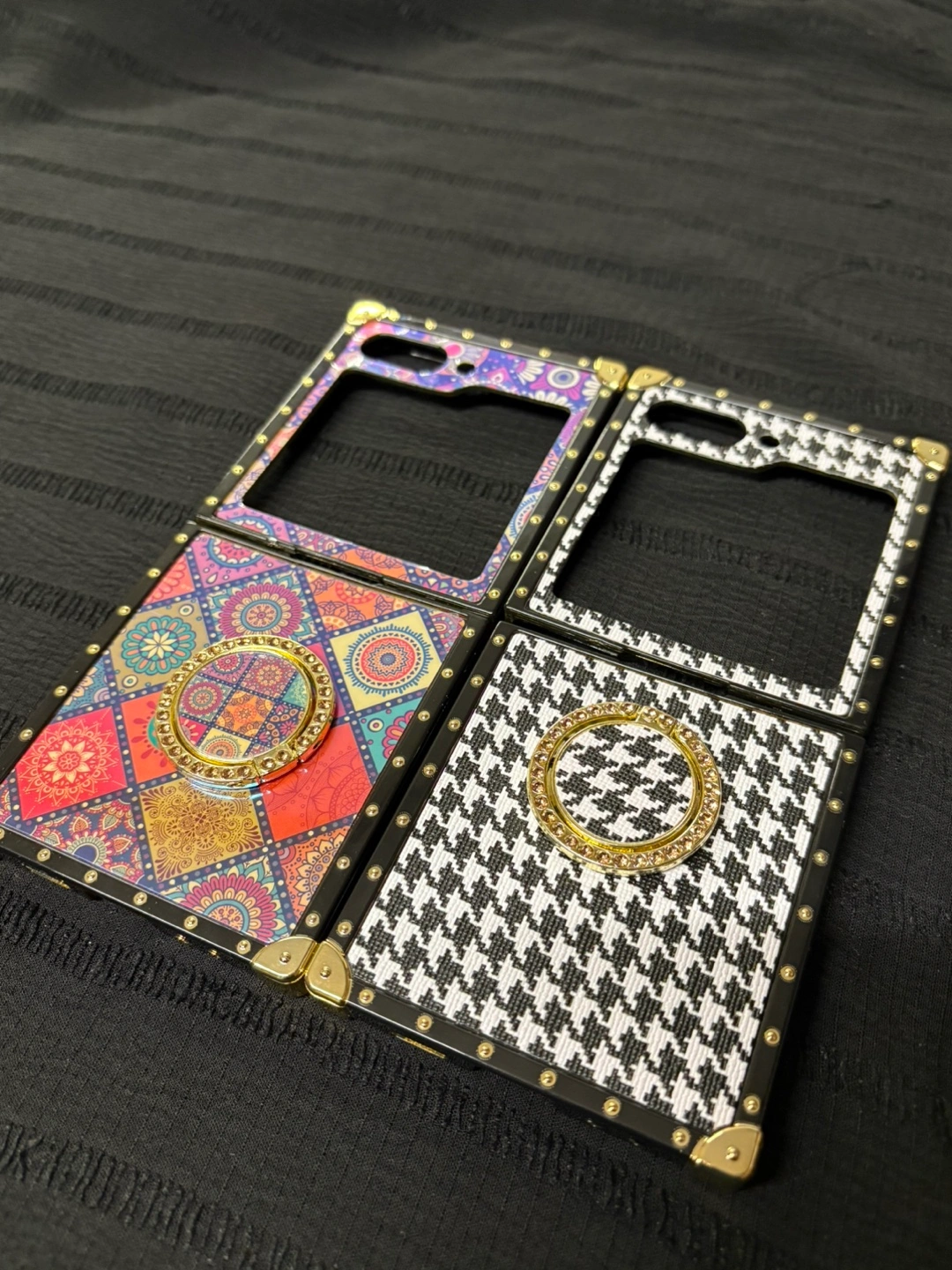 Luxury Glitter Cover For Samsung Galaxy Z Flip 6 Flip 5 Case Houndstooth Pattern Leather Case For Samsung Galaxy Z Flip 5 and Luxury Glitter Square Flower Case. Brand new each for 15$