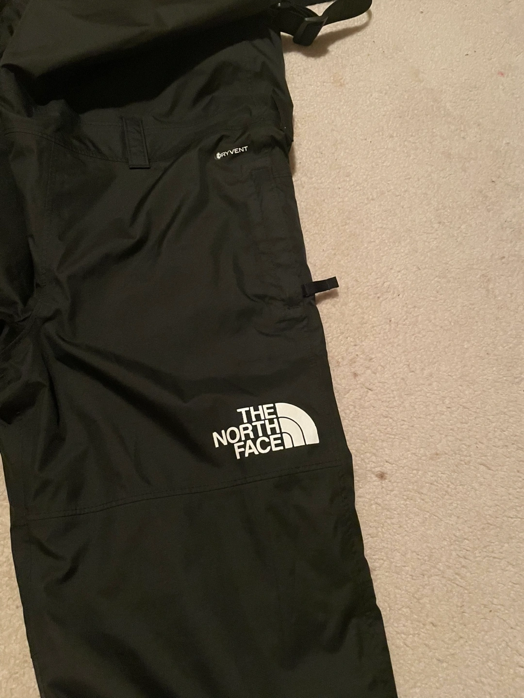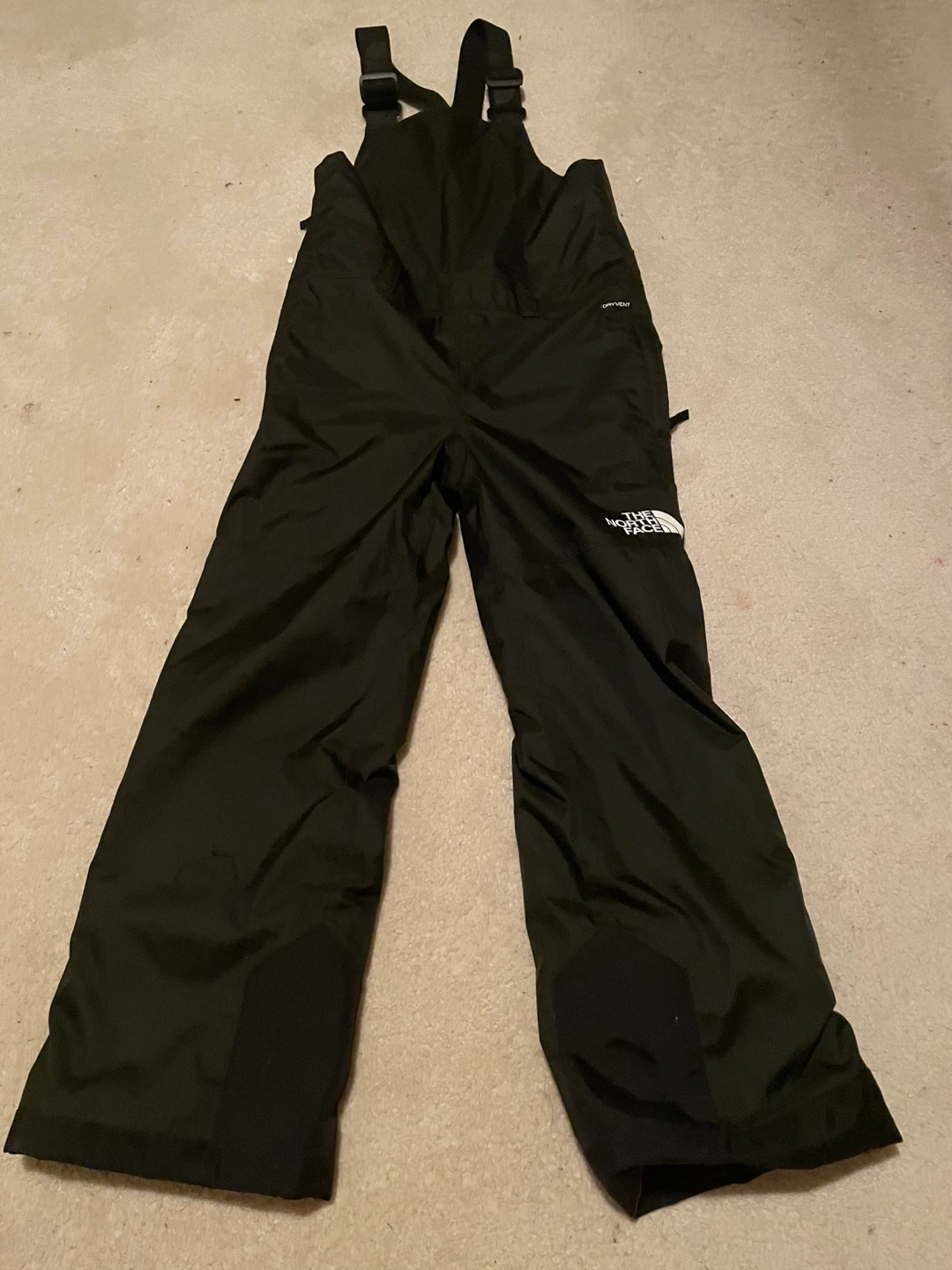 Black snow pants with suspenders. Size is labelled as medium.Brandeis tag on , size is for 10 to 12 years old ( youth size ) not for adult .Meet for pick up