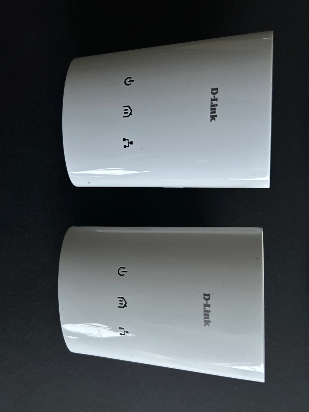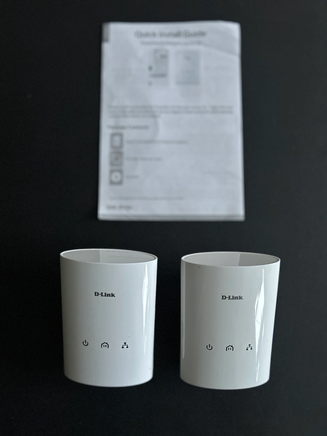 Two D-Link DH-307AV wireless range extenders using power line, Includes instruction manual.