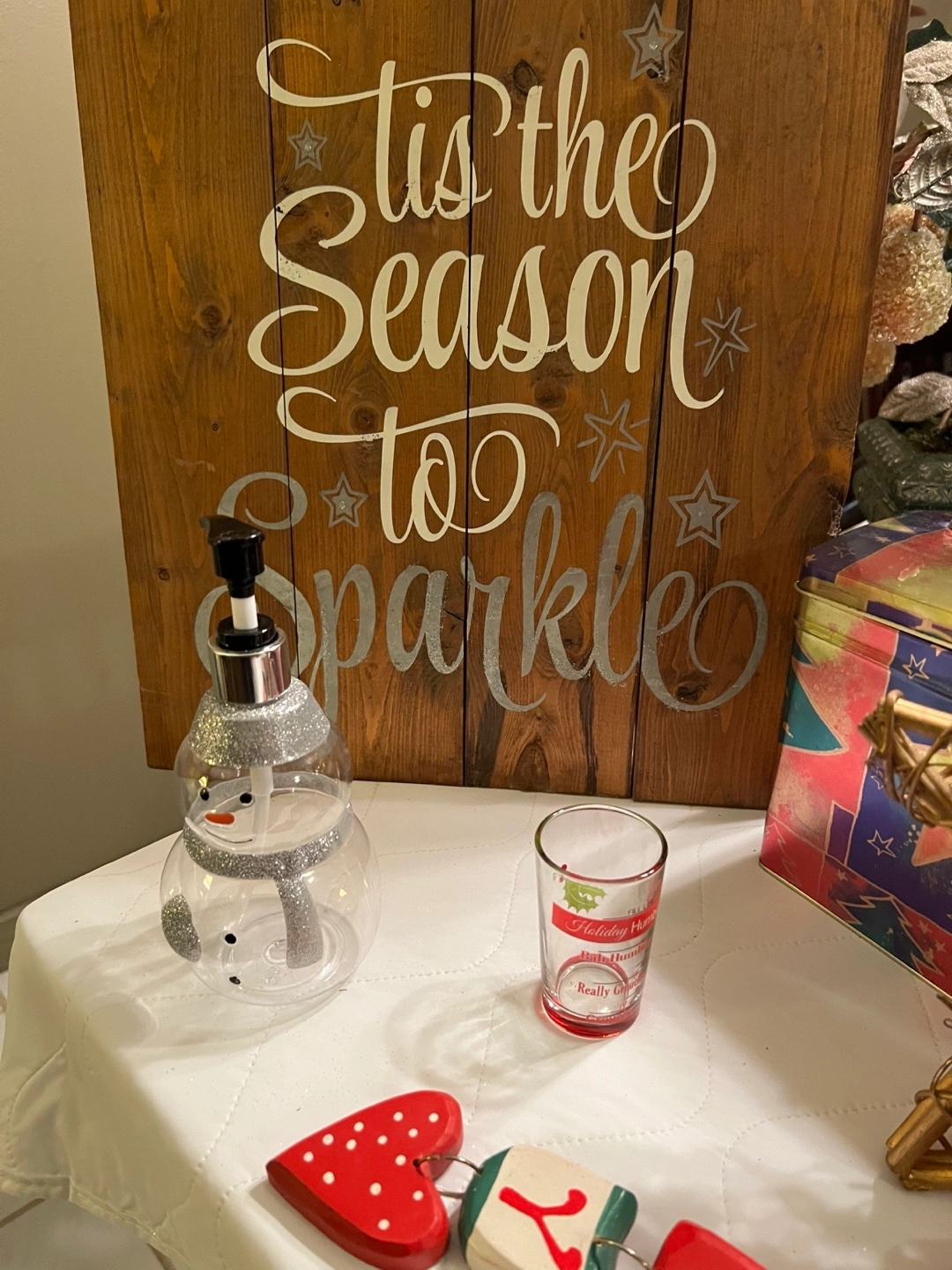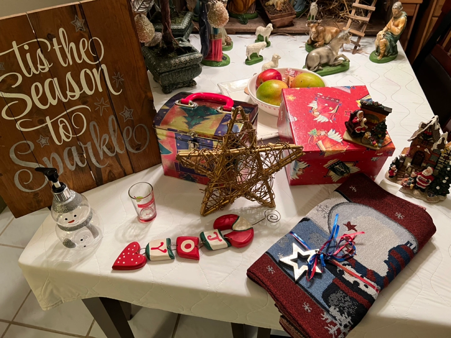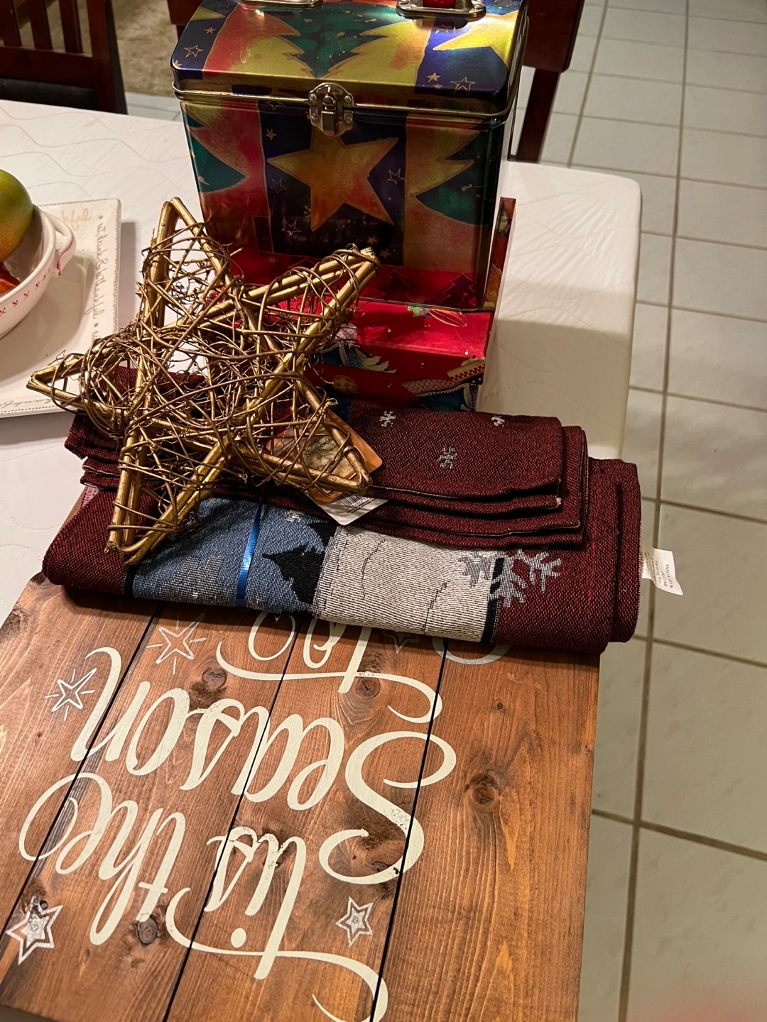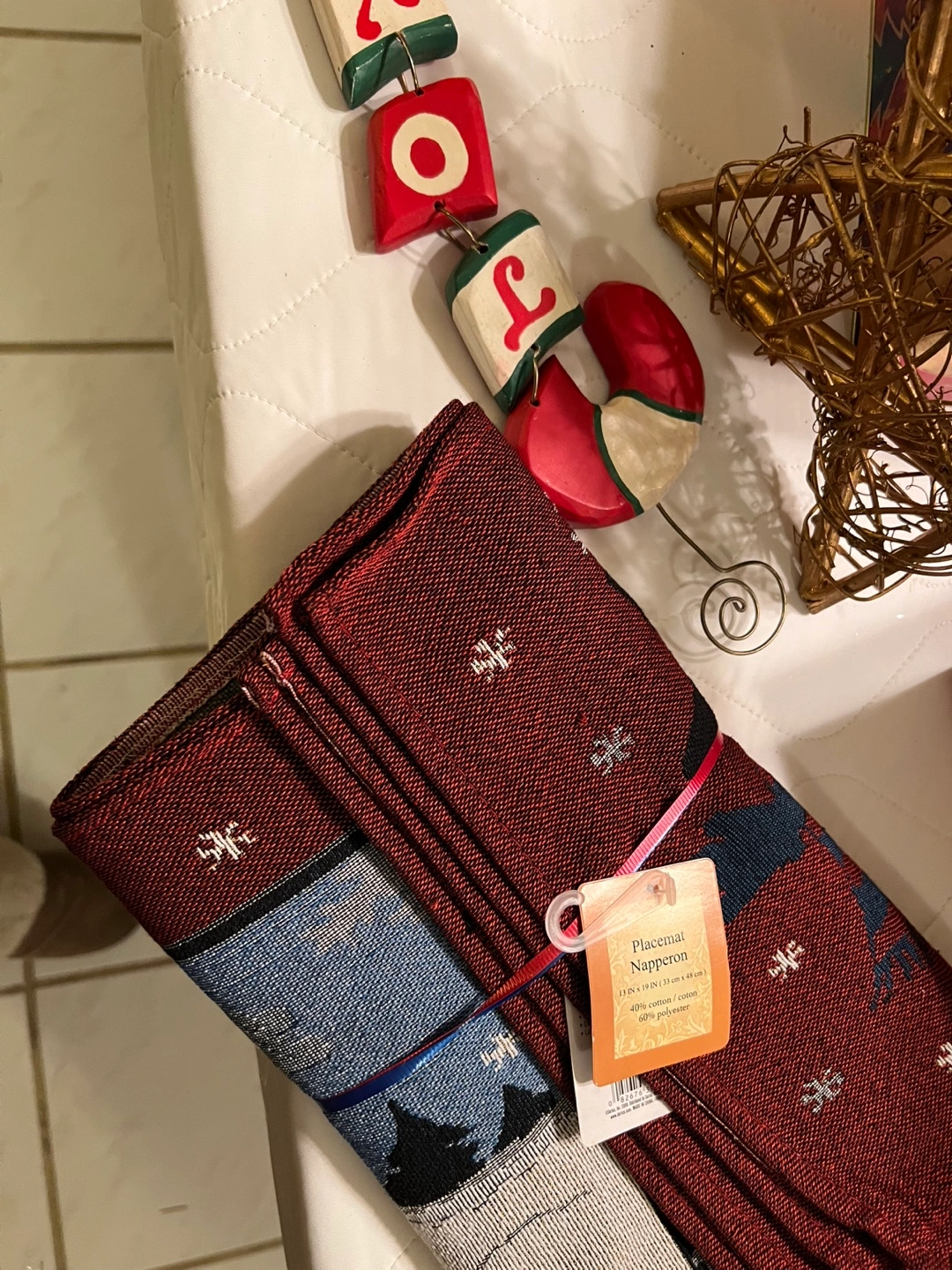 145Set of 4 placemats with a Christmas theme. Wooden sign. Xmas boxes. Tree star and more. Ask for free delivery