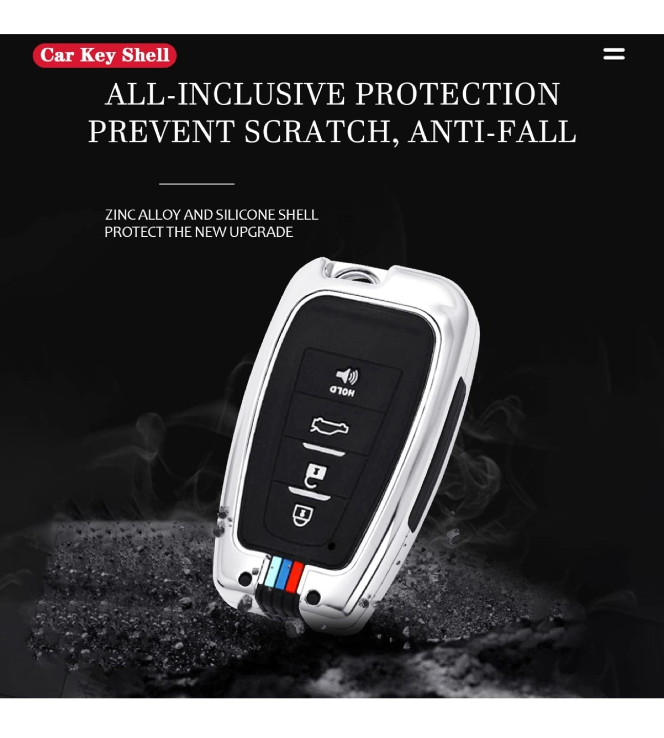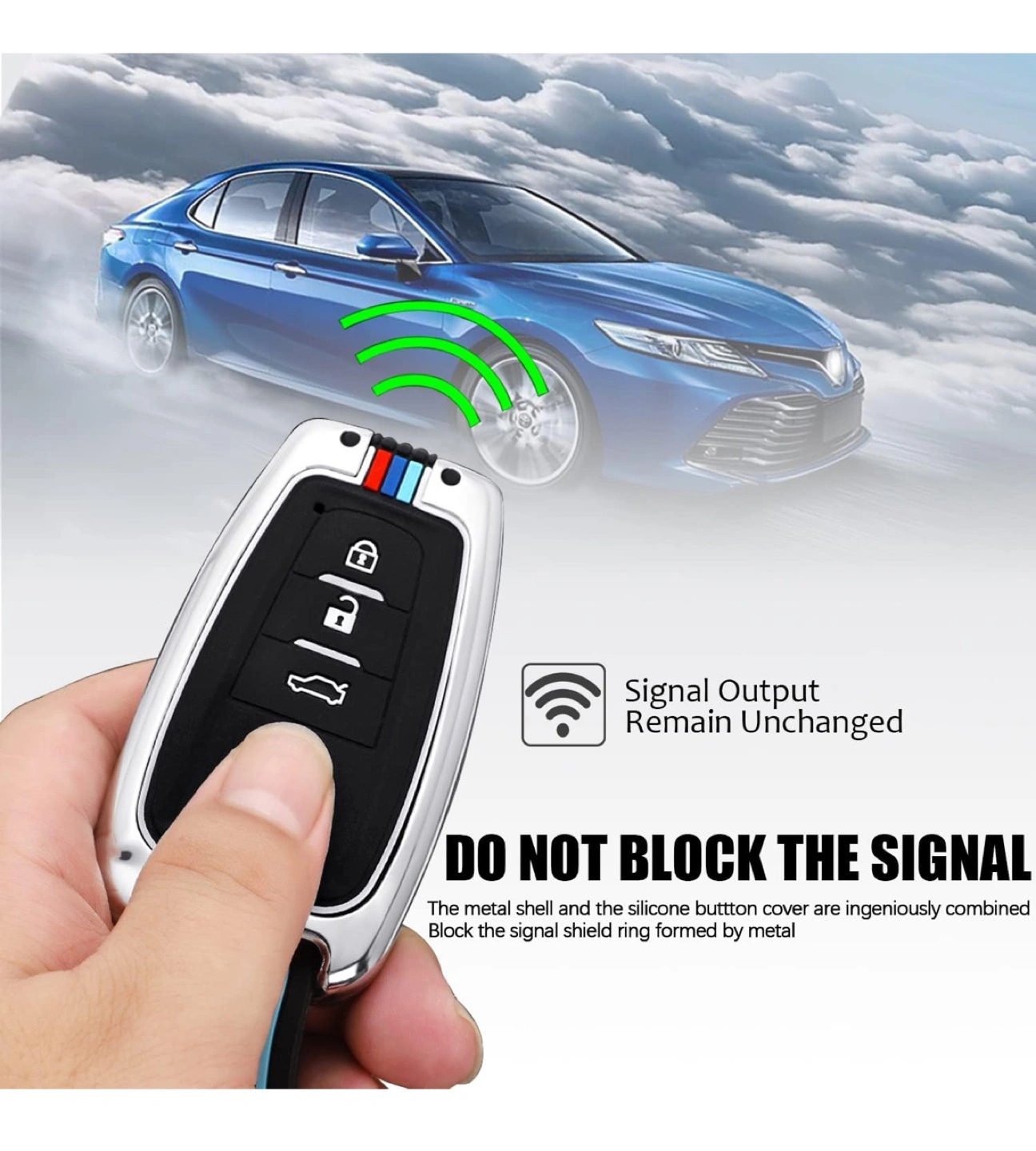 [Premium Material] Made of zinc alloy and silicone materials. The original car key 1:1 modeling. It fits your car key perfectly and will not affect the signal.