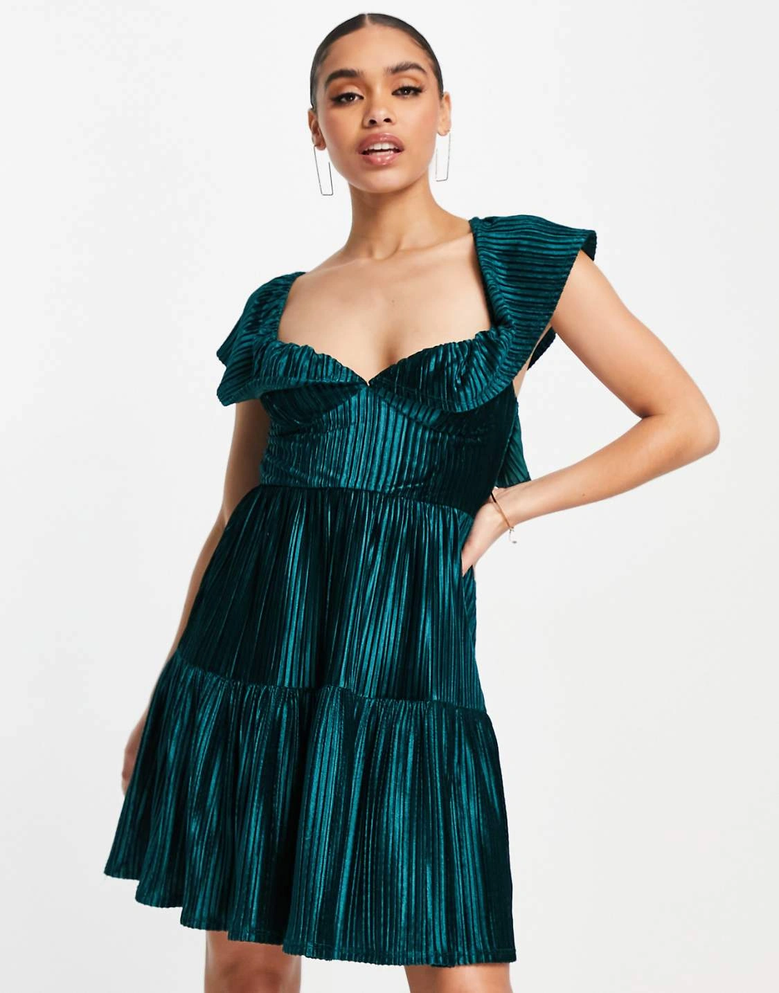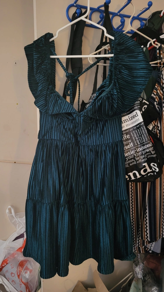 1000+Green velvet dress with a sweetheart neckline, a tie-up back and a tiered skirt. The dress has a ruffled sleeve. Located in downtown Toronto ( Yonge/Sherbourne and Bloor and Sherbourne and Wellesley) Cash or etransfer is fine.