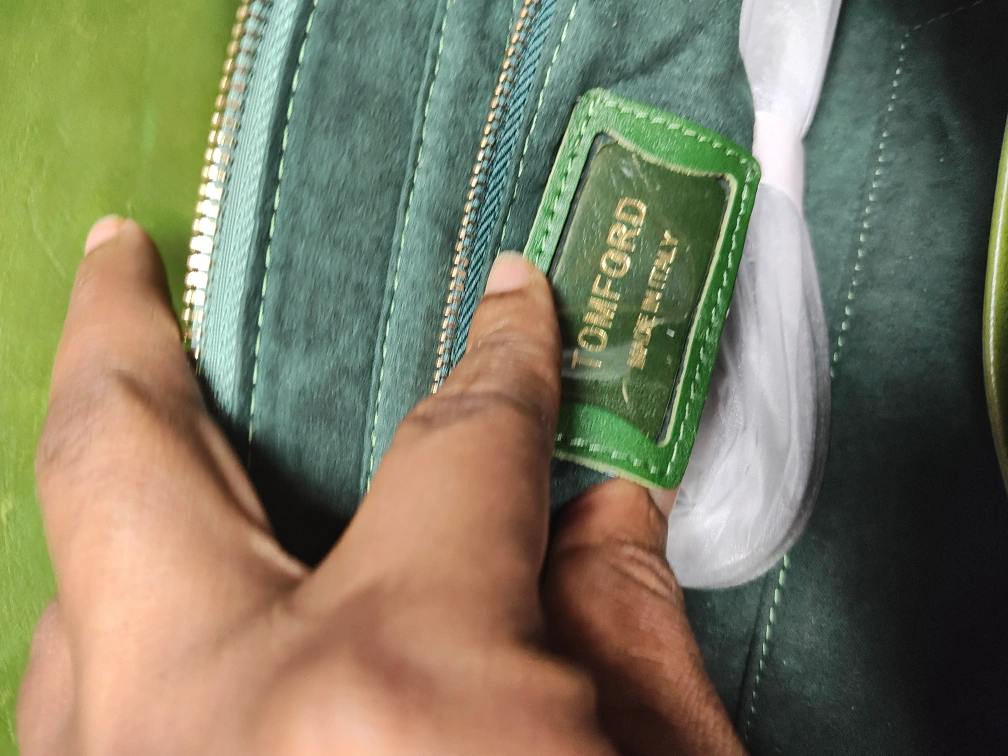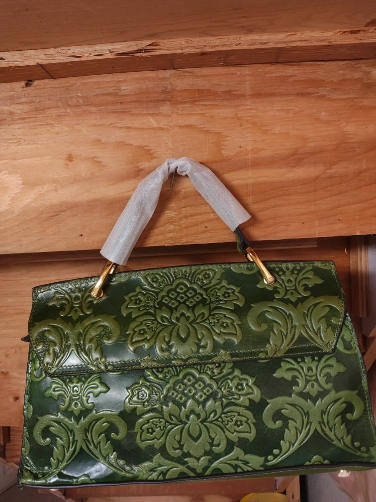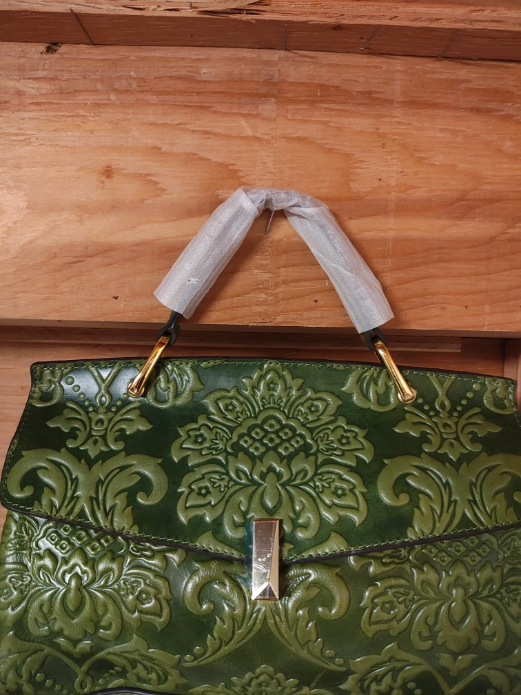 Green Leather Handbag with Floral Embossed Design (Sales)