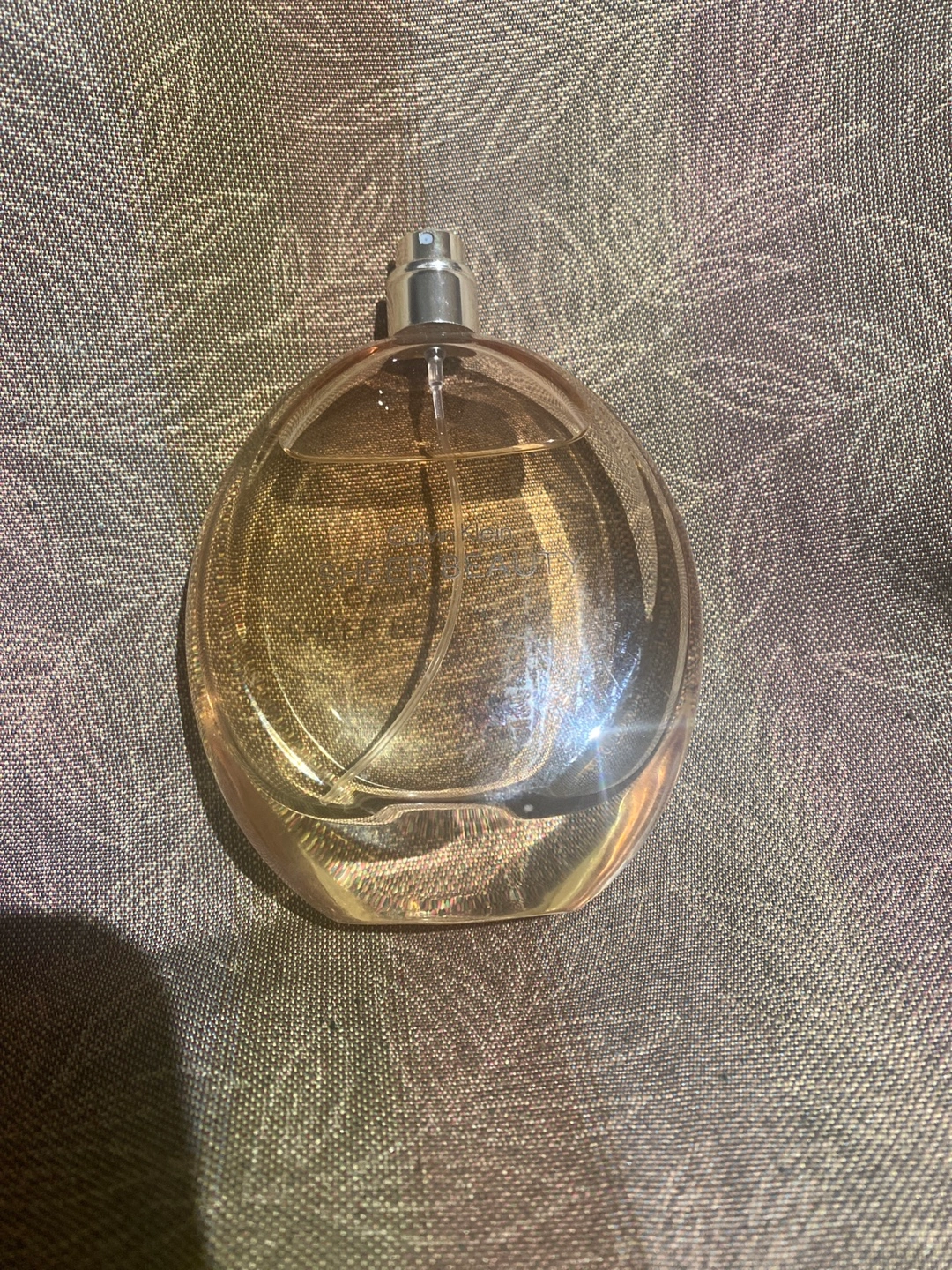 164Almost full bottle of Calvin Klein perfume. Round bottle with silver cap. Missing top cap.