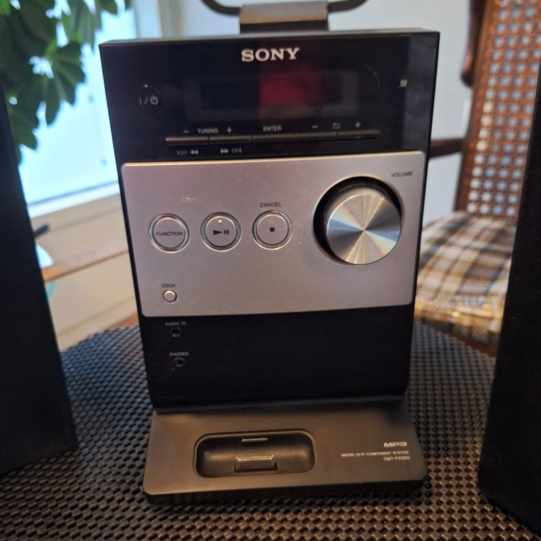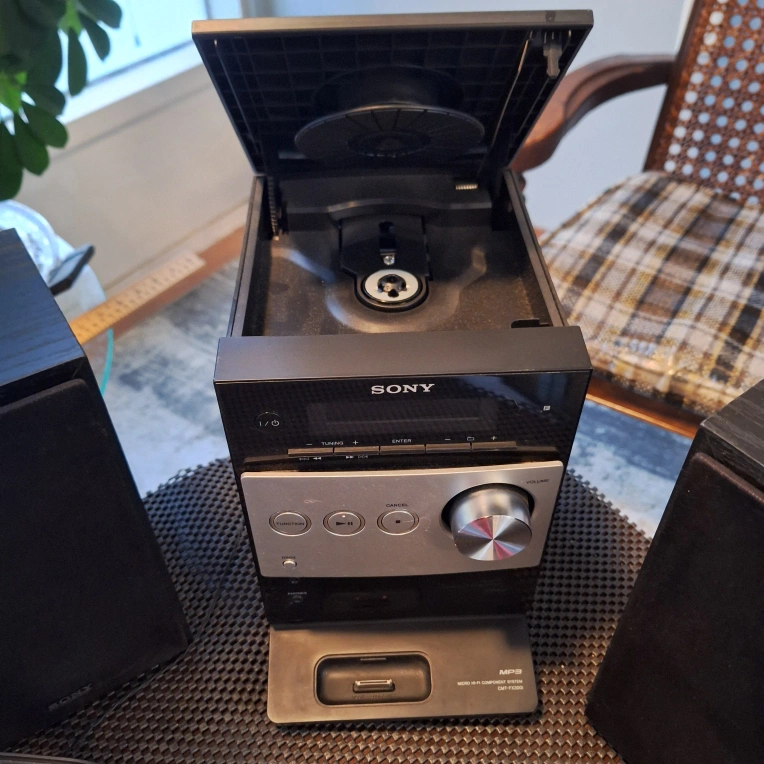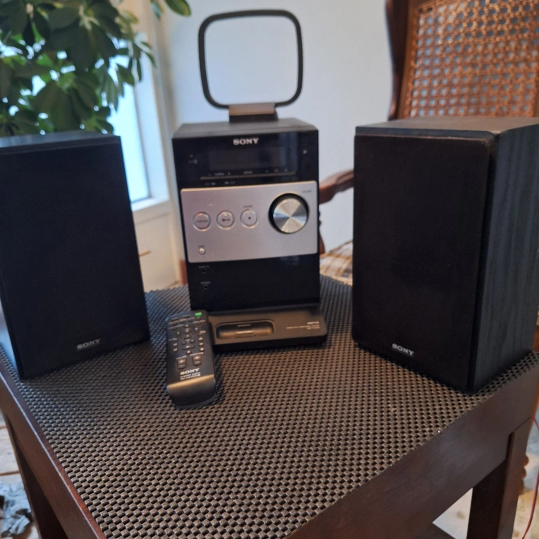 Sony micro system. CD player, AM/FM Radio, MP3 player, IPOD Docking station, Remote. Great sound, perfect size for desktop, living room or counter top.