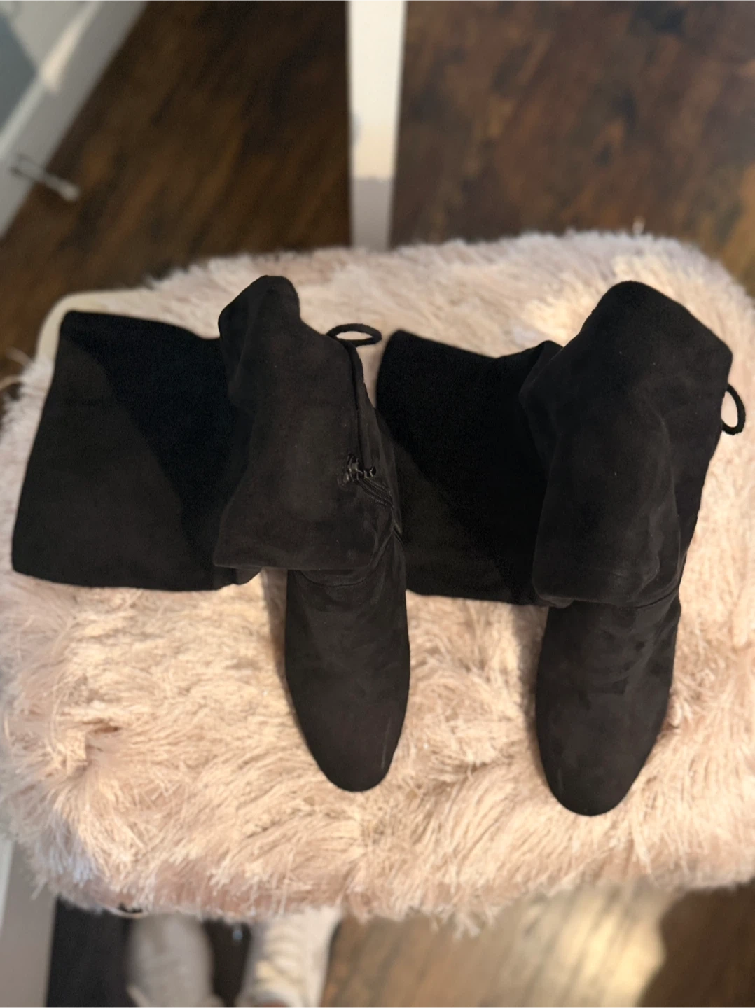 Selling a pair of Aldo, over-the-knee boots in black. Worn only once, comes with the original box! Originally bought for $150 plus tax 😁you will love those boots they are beautiful