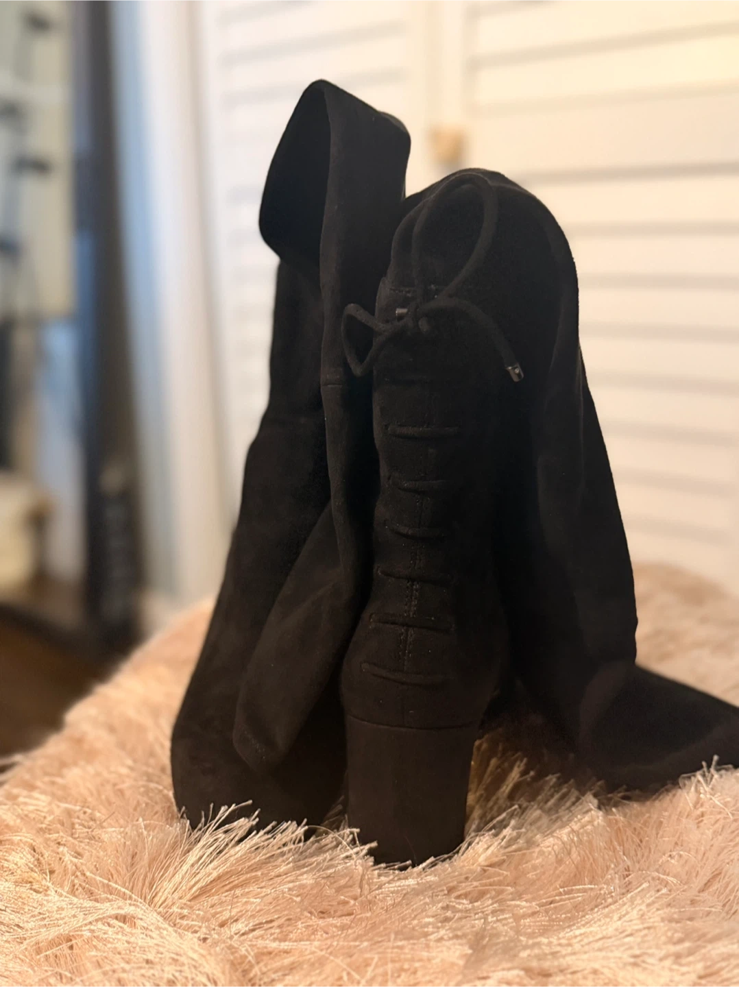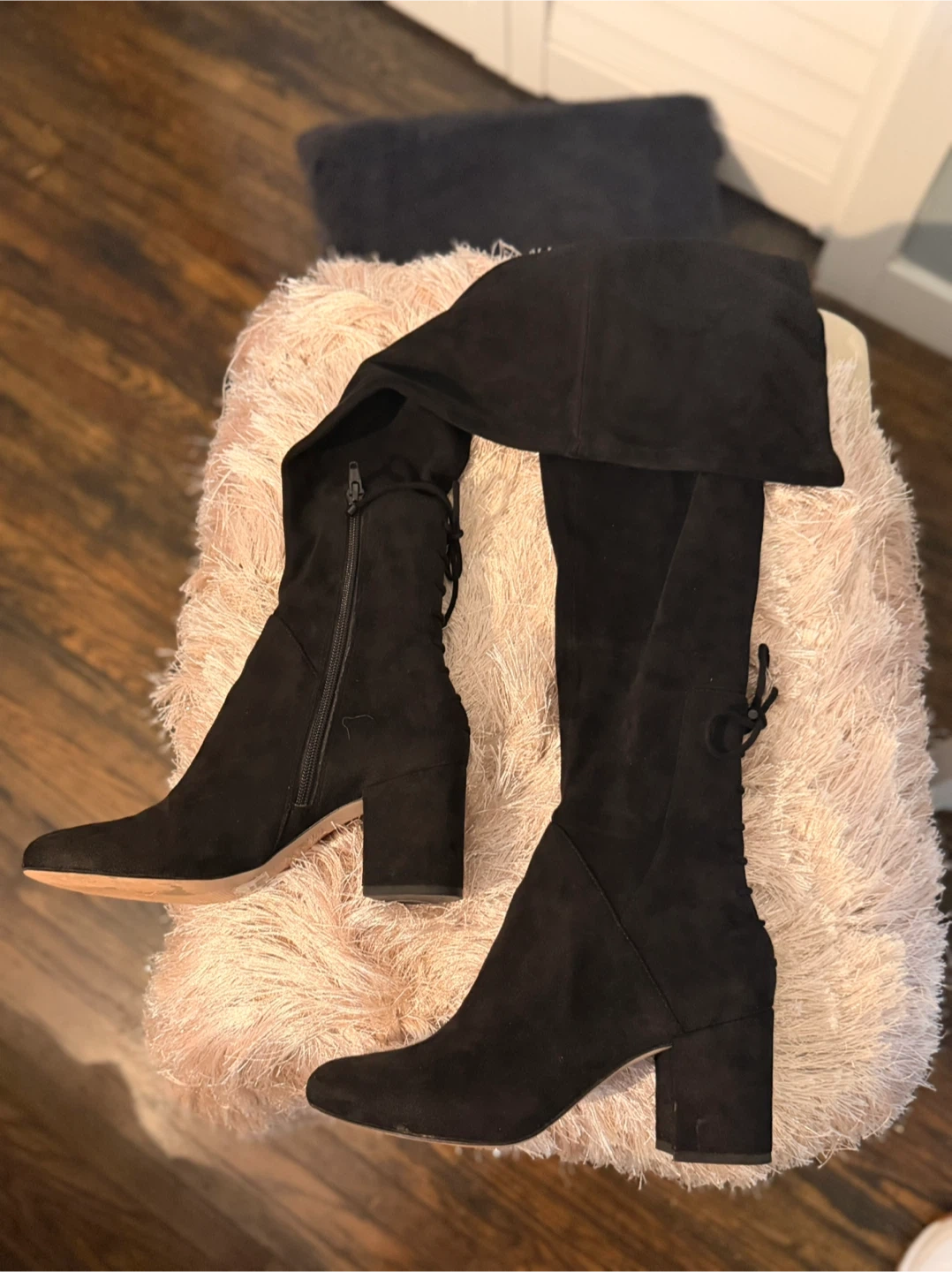 Selling a pair of Aldo, over-the-knee boots in black. Worn only once, comes with the original box! Originally bought for $150 plus tax 😁you will love those boots they are beautiful