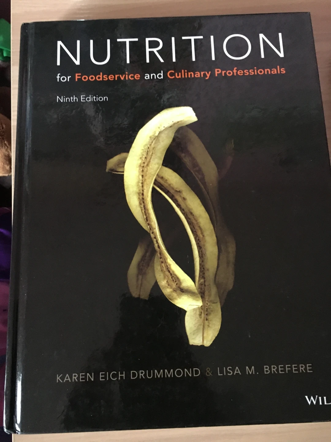 This is the Ninth Edition of Nutrition for Foodservice and Culinary Professionals. It covers essential nutrition topics for culinary professionals and foodservice operations. Authors are Karen Eich Drummond & Lisa M. Brefrere.