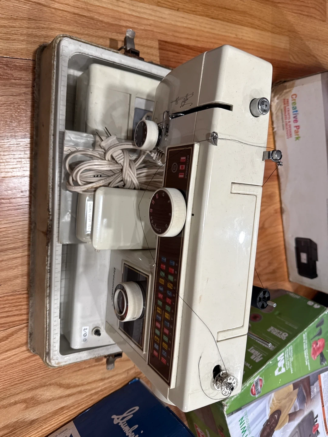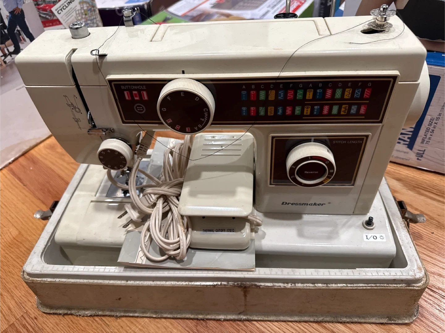 Selling a vintage Dressmaker sewing machine! It comes with its original case and foot pedal. It has different stitch settings and a buttonhole function. Great for someone looking to learn to sew or for basic sewing projects