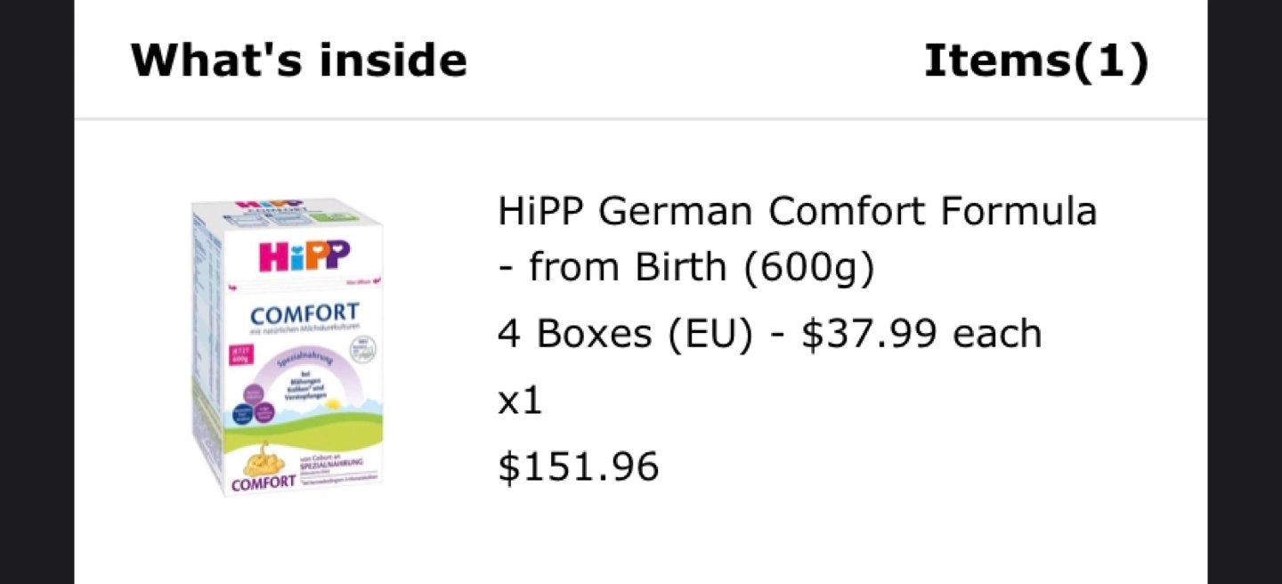 140$20.00 each box. 4 boxes of HiPP German Comfort Formula for babies from birth. 600g per box. Expiration- 07-23-2025 Never used. Never opened. Didn’t end up needing. $20 per box. 4 boxes available.