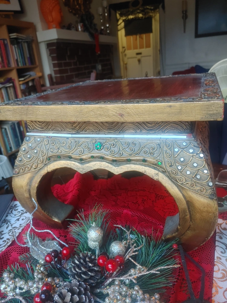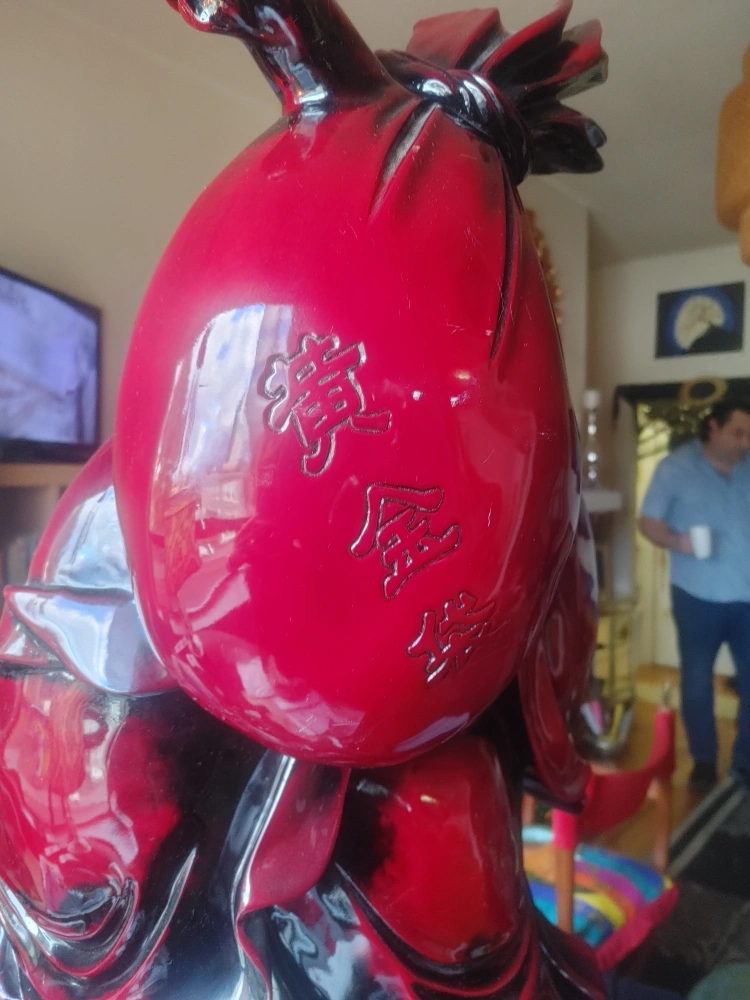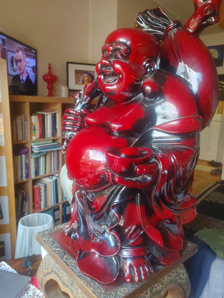 This fabulous Buddha is heavy. It comes with a stand. He does have one tiny chip on a toe nail.