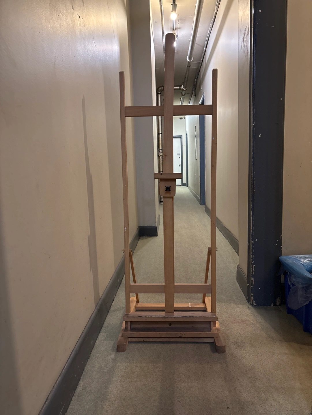 Wooden easel in good condition. Adjustable height and angle. Includes a small drawer for supplies.
