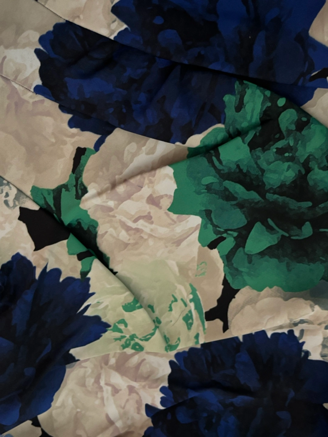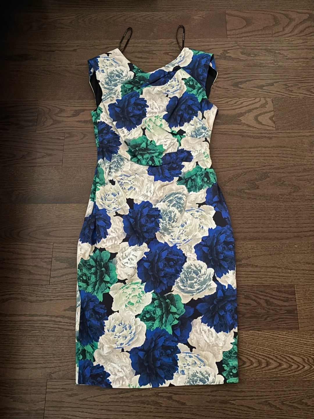 Floral print dress with short sleeves and a v-neck. No zippers. In perfect condition, never worn.