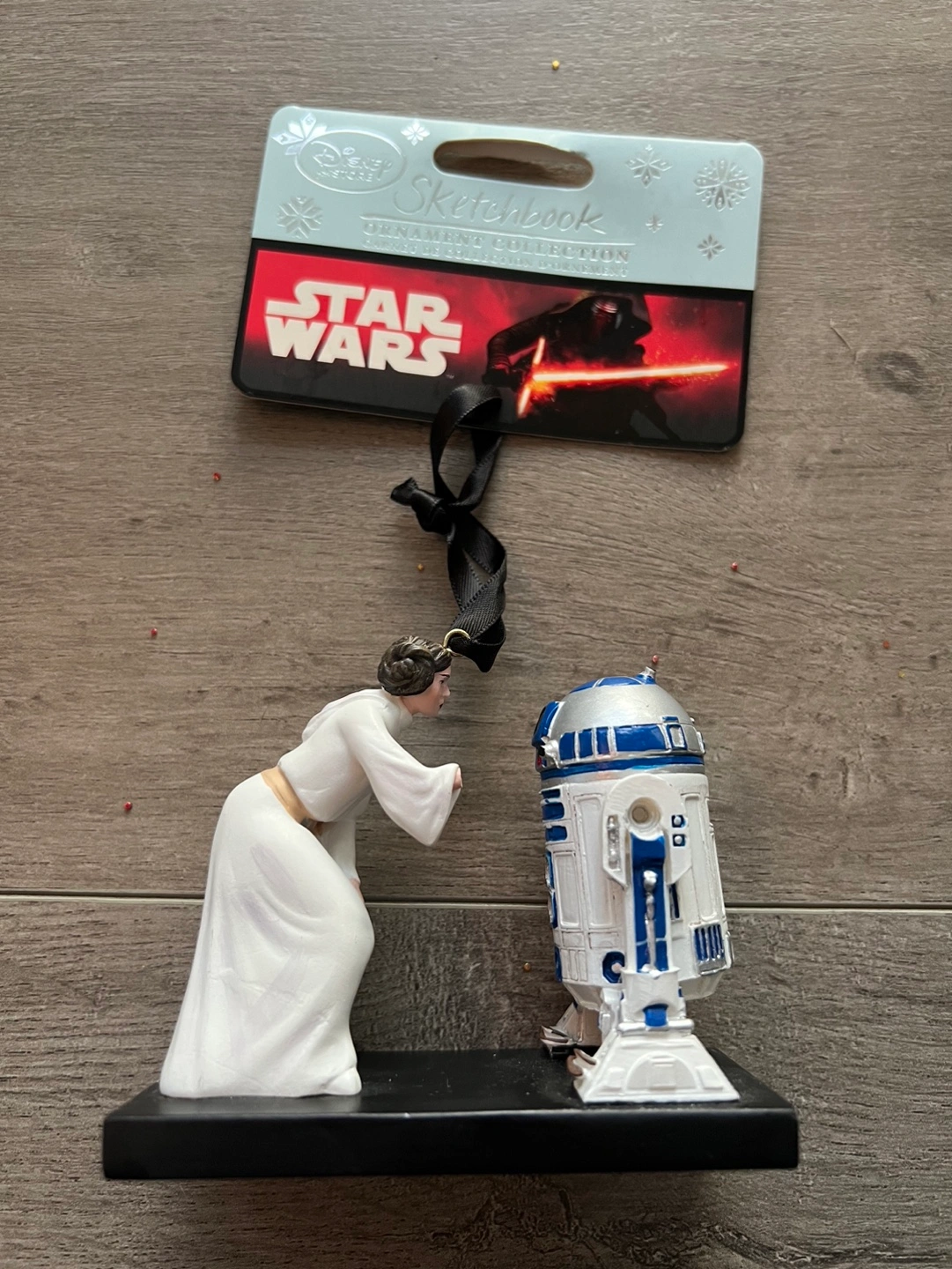 Disney Sketchbook Ornament Collection. Princess Leia and R2-D2. Comes with a black ribbon for hanging.