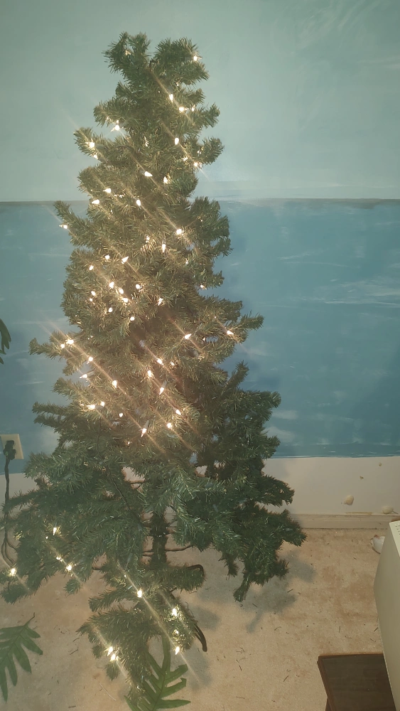 42Artificial Christmas tree with lights. Includes stand. Good condition.