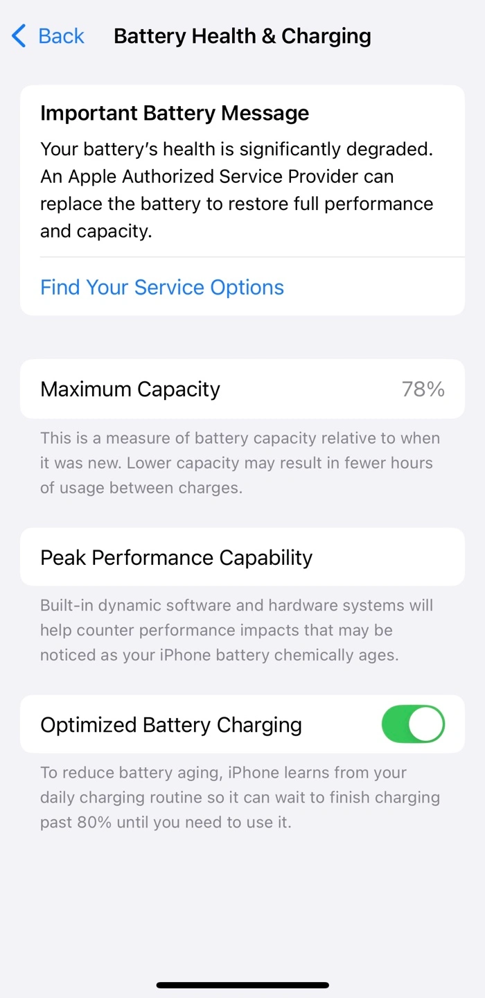 I’m selling my iPhone 13 Midnight, 128 GB, with a whopping 78% battery health.
