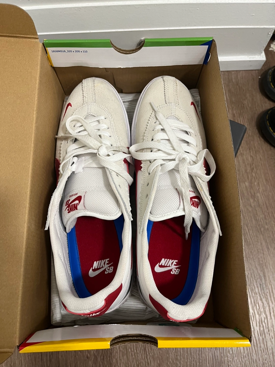Selling Nike BRSB red/white shoes. Purchased from Yorkdale. Barely used, worn 3-4 times. Cared well, with the box. Size 10.5 Pick up at Yonge line.