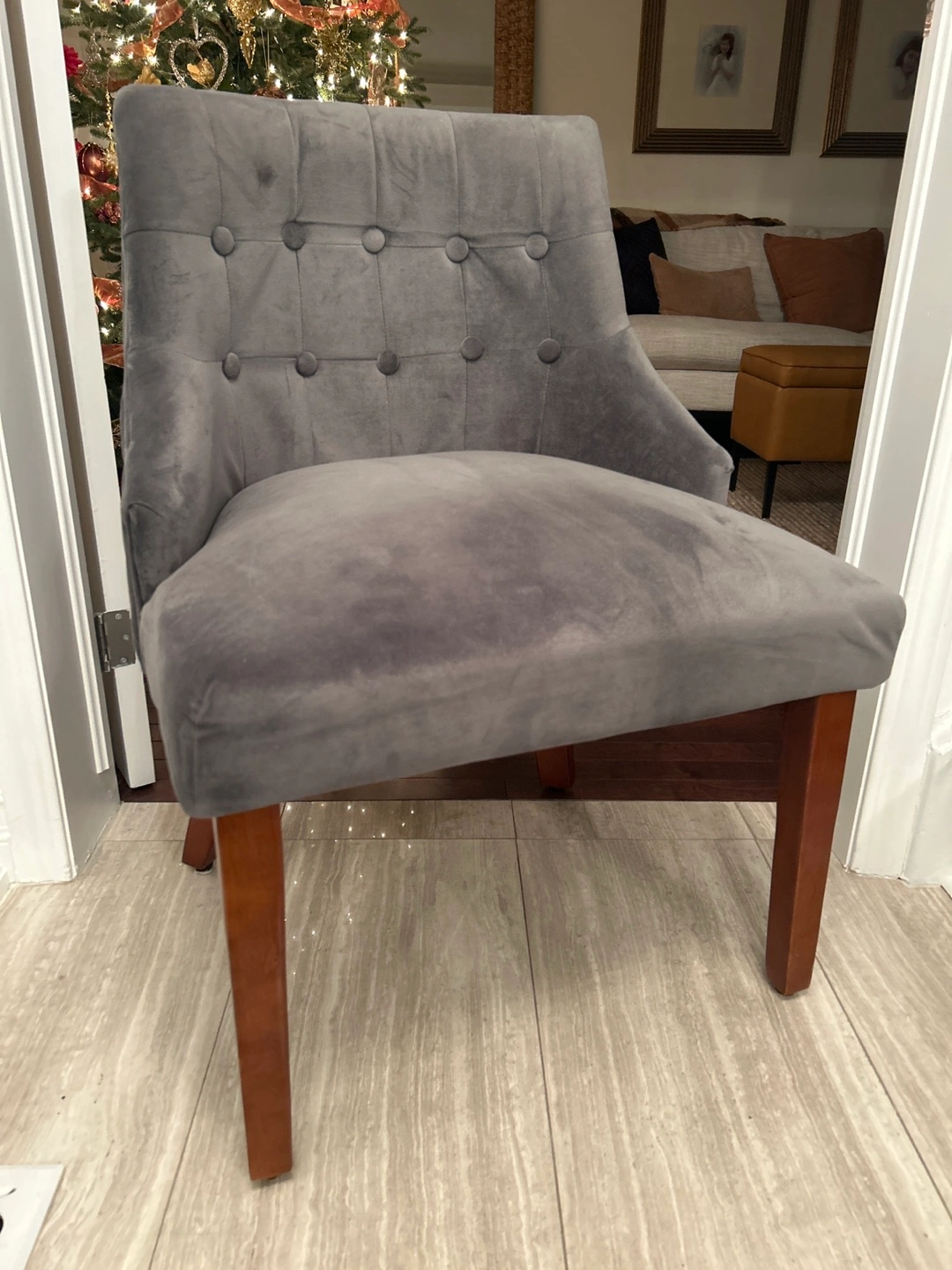 Two Blue Tufted Accent Chairs