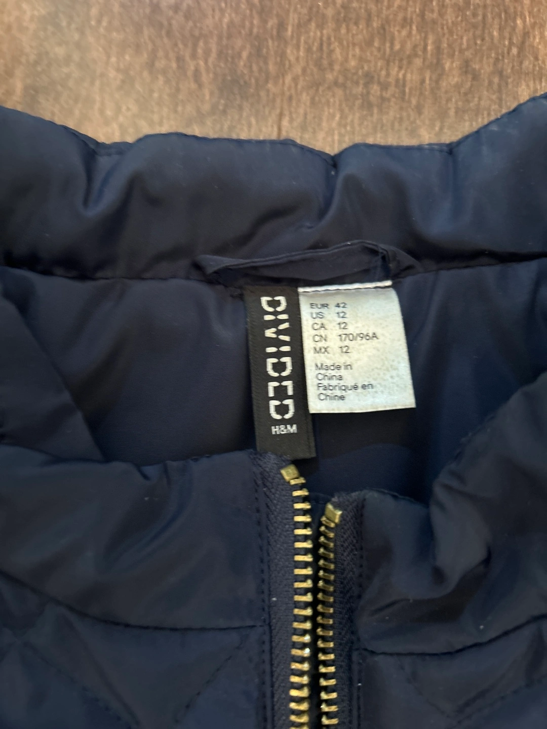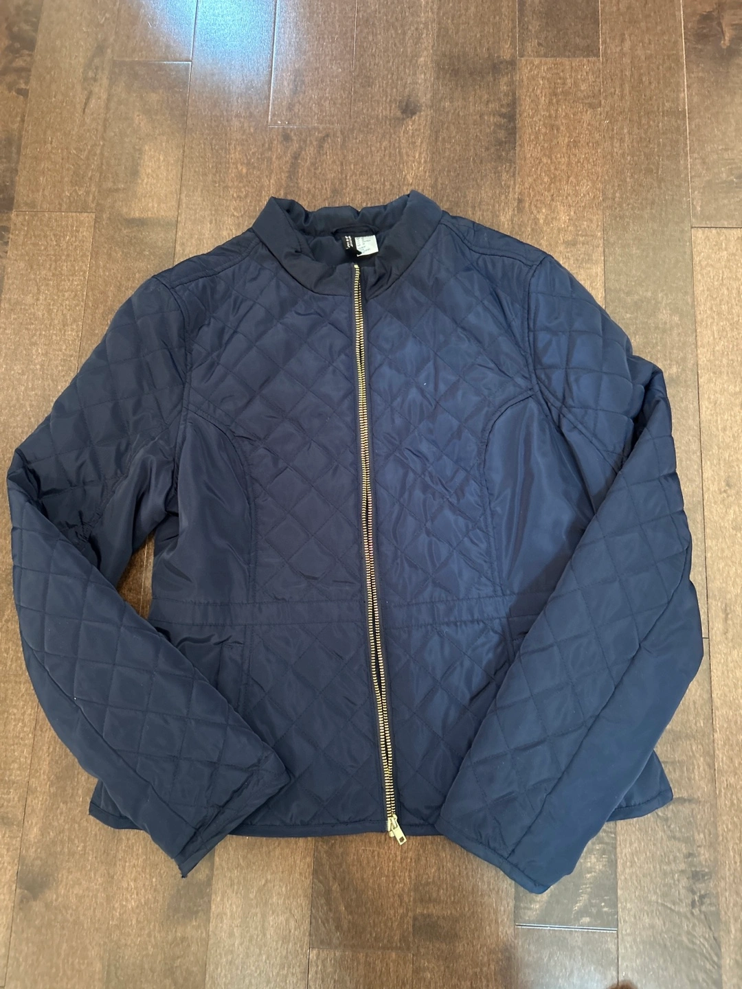 19Navy blue quilted jacket. Zip closure. Size 12. Fitted - small fit feels like 8-10