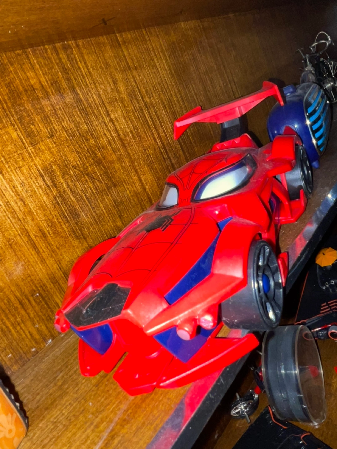 240Red and blue toy car with Spider-Man design. Has working wheels.