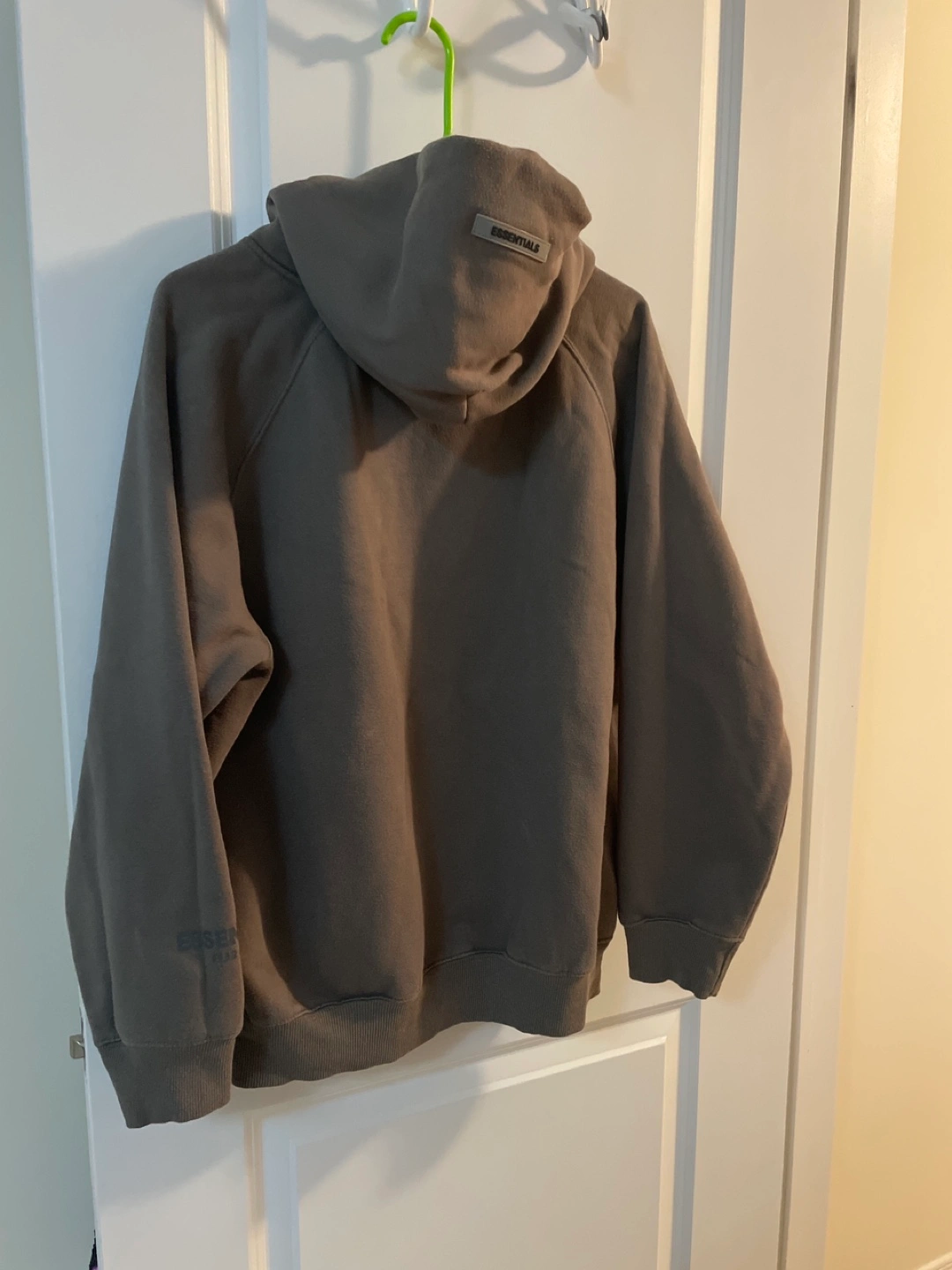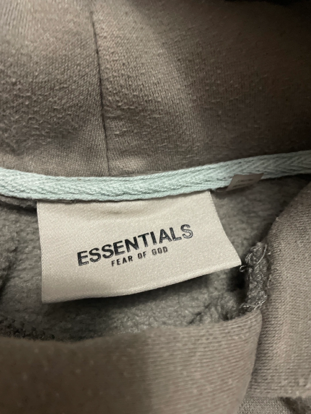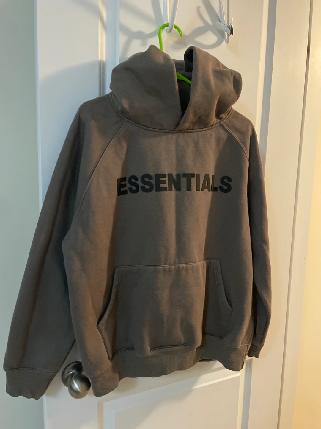 Grey hoodie with Essentials branding. Size Large. Smoke free and pet free home