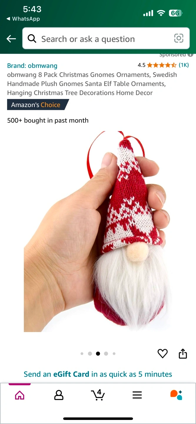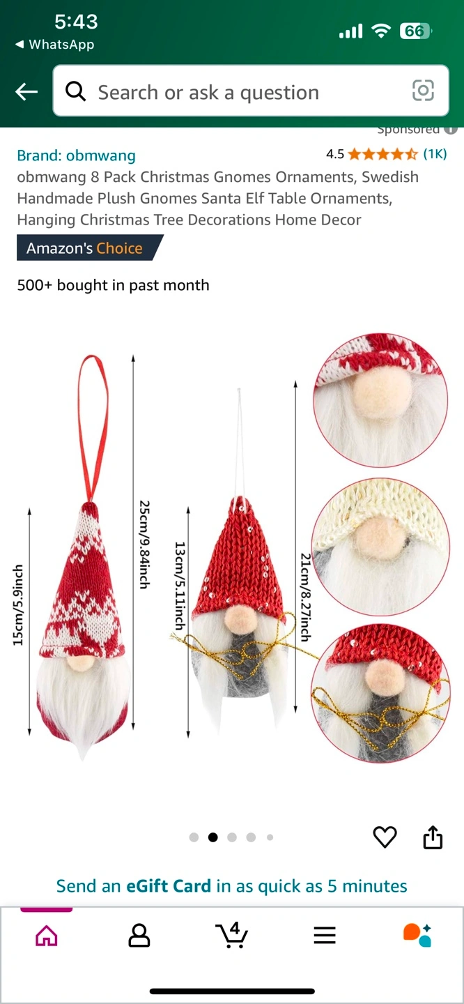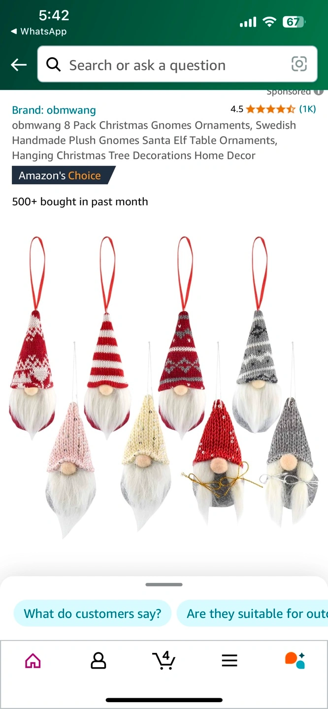 8 Pack Christmas Gnomes Ornaments