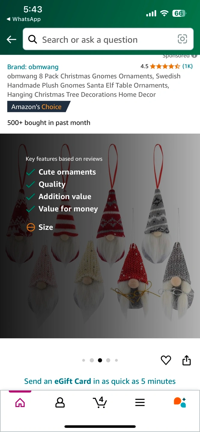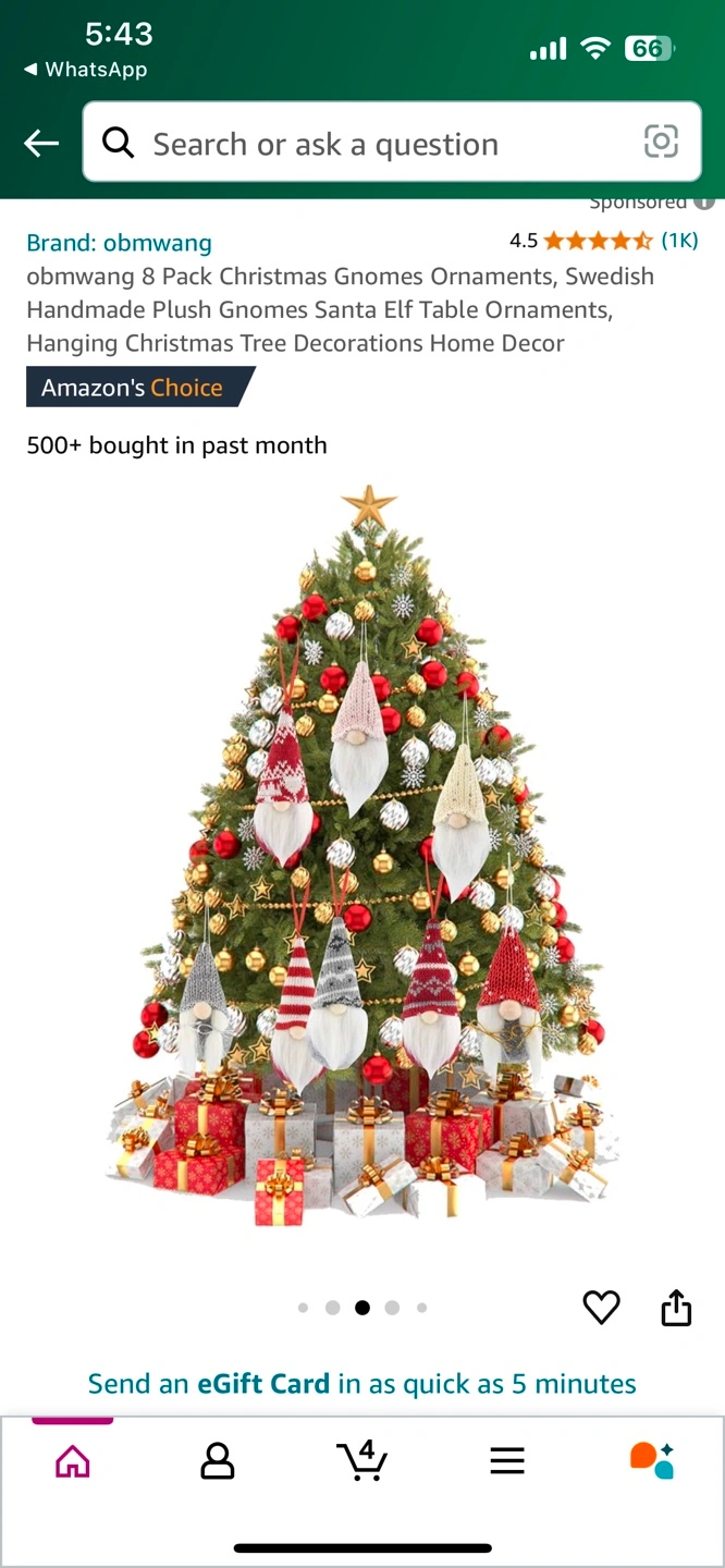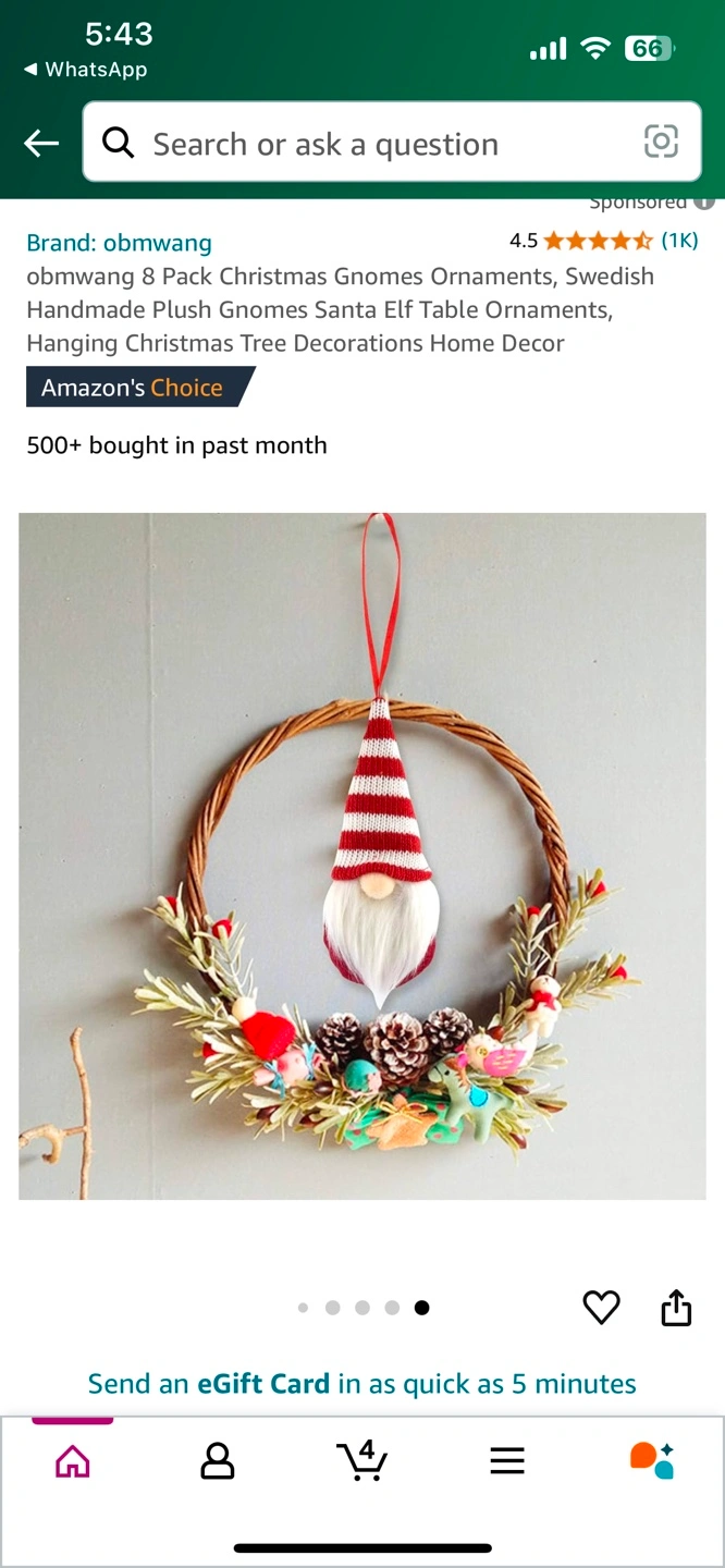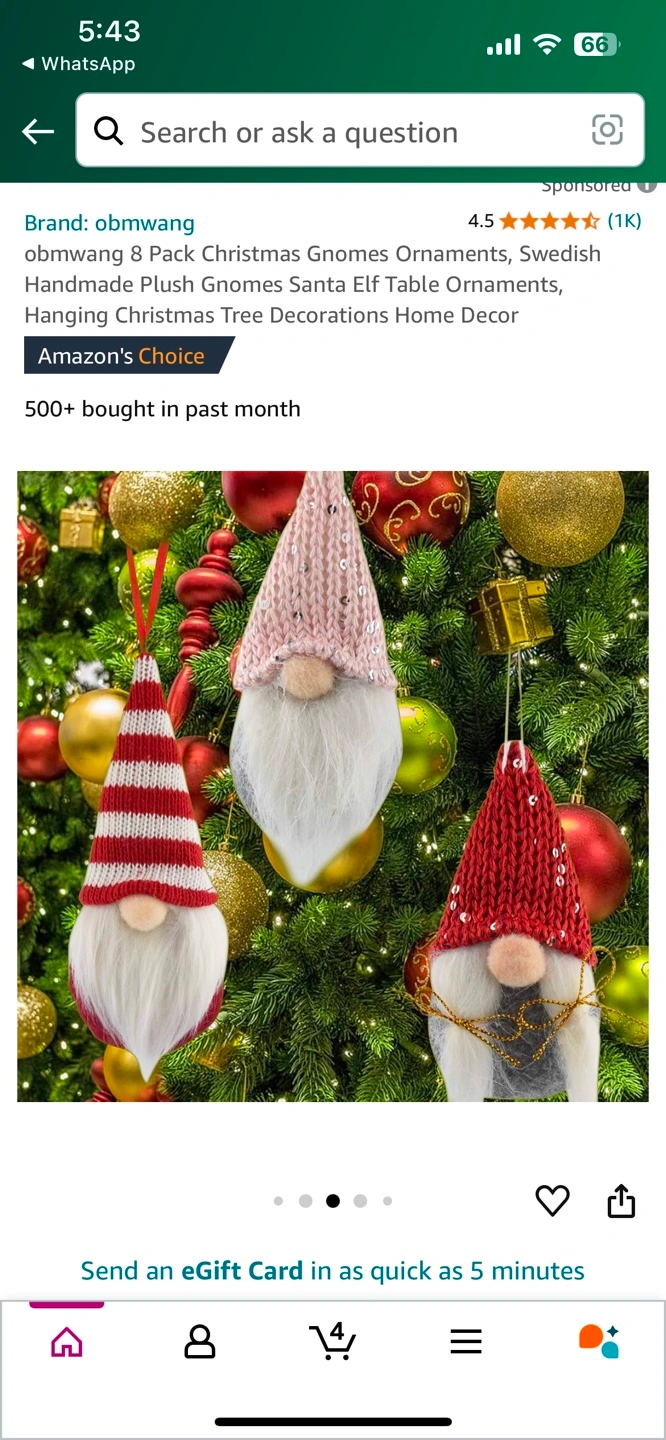 8 Pack Christmas Gnomes Ornaments