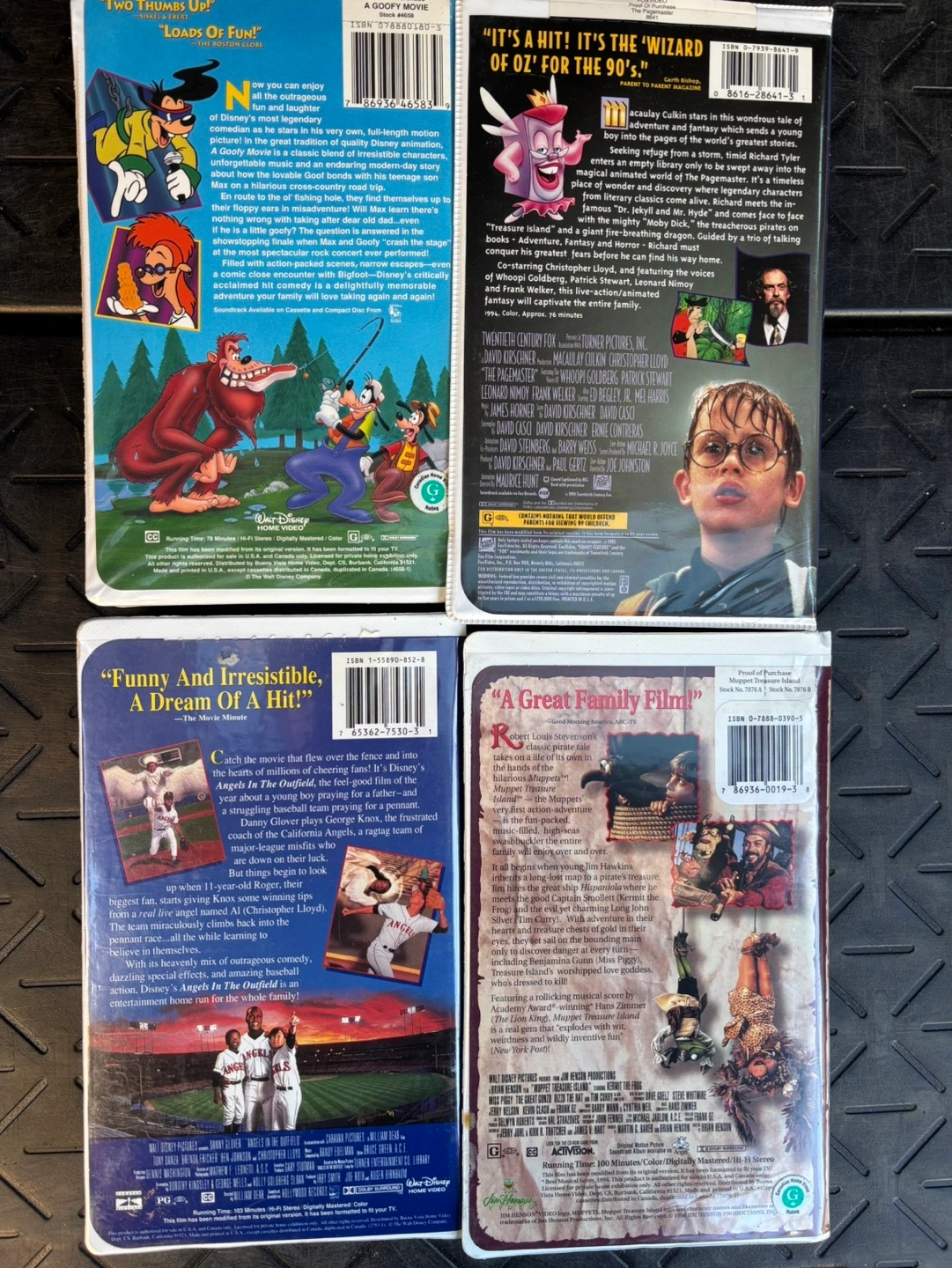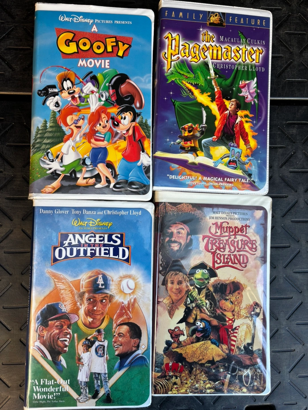 376Four VHS tapes, all in good condition. Titles include: Goofy Movie, The Pagemaster, Angels in the Outfield, Muppet Treasure Island, A Goofy Movie, and The Wizard of Oz. Smoke free pet free home Pick up can be Rathburn and the west mall area Or Symington and DuPont