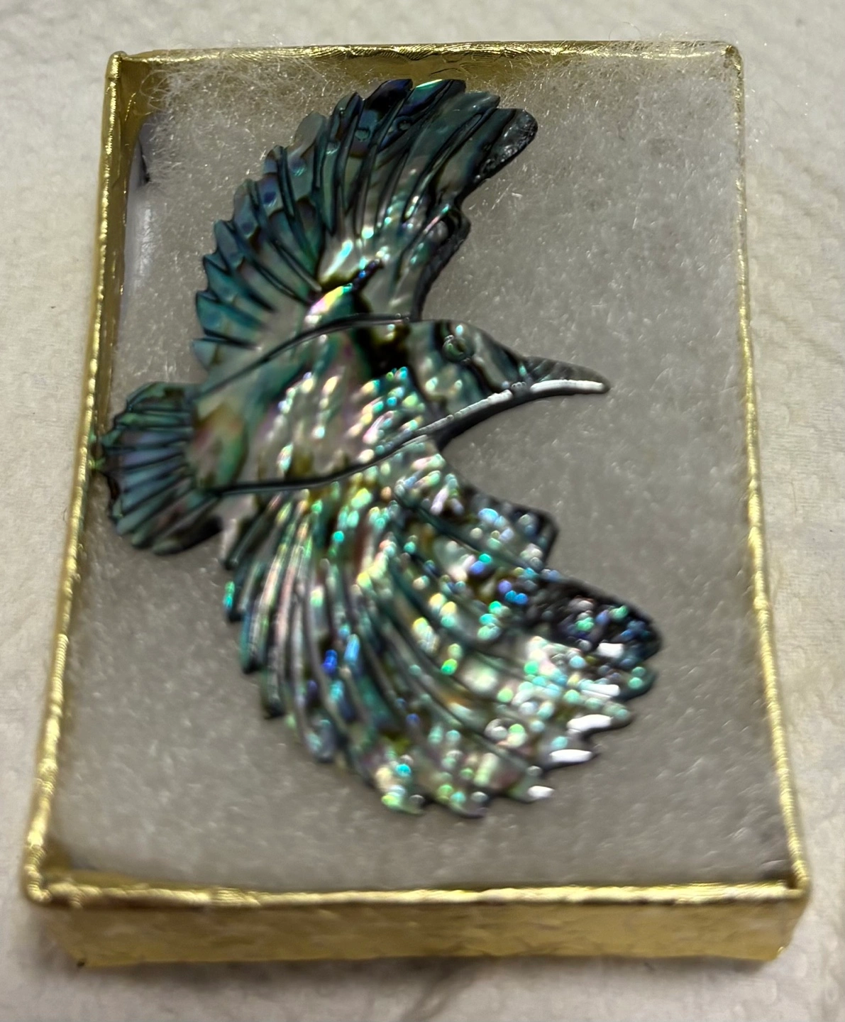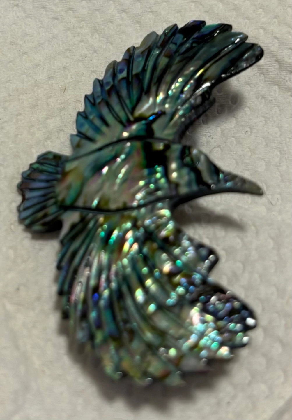 Abalone shell brooch shaped like a hummingbird. In great condition. Bought at Native Art shop on Manitoulin Island 30 years ago.