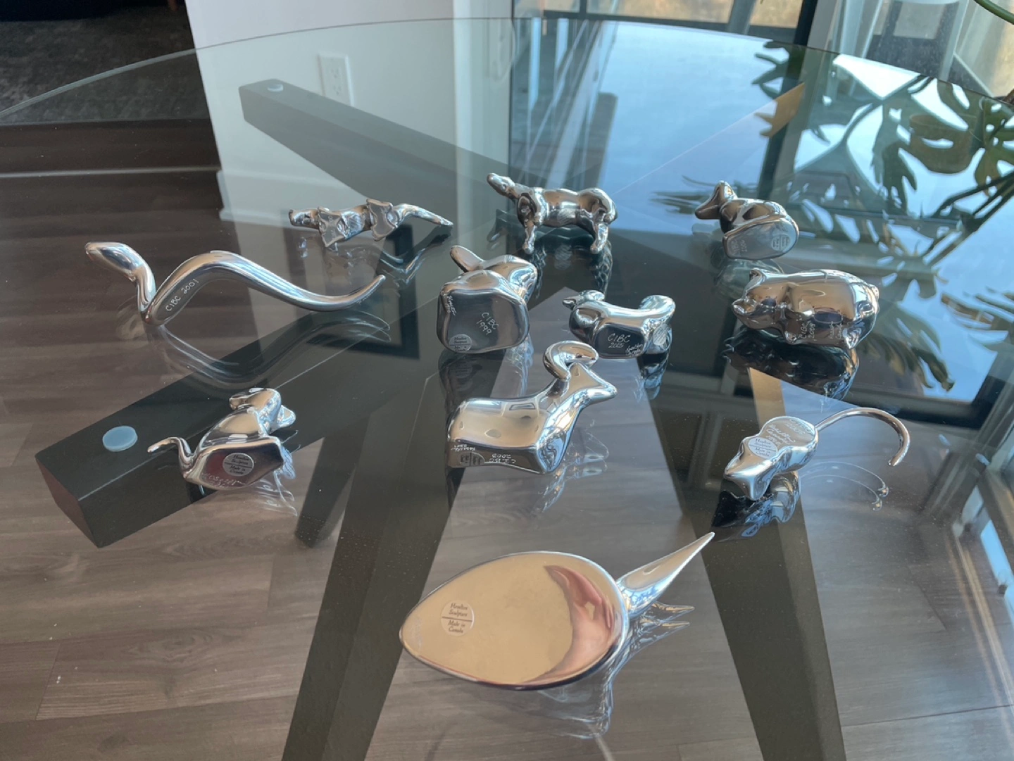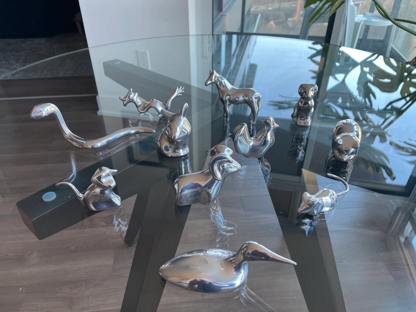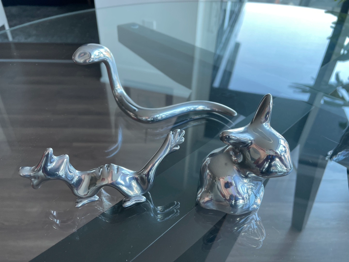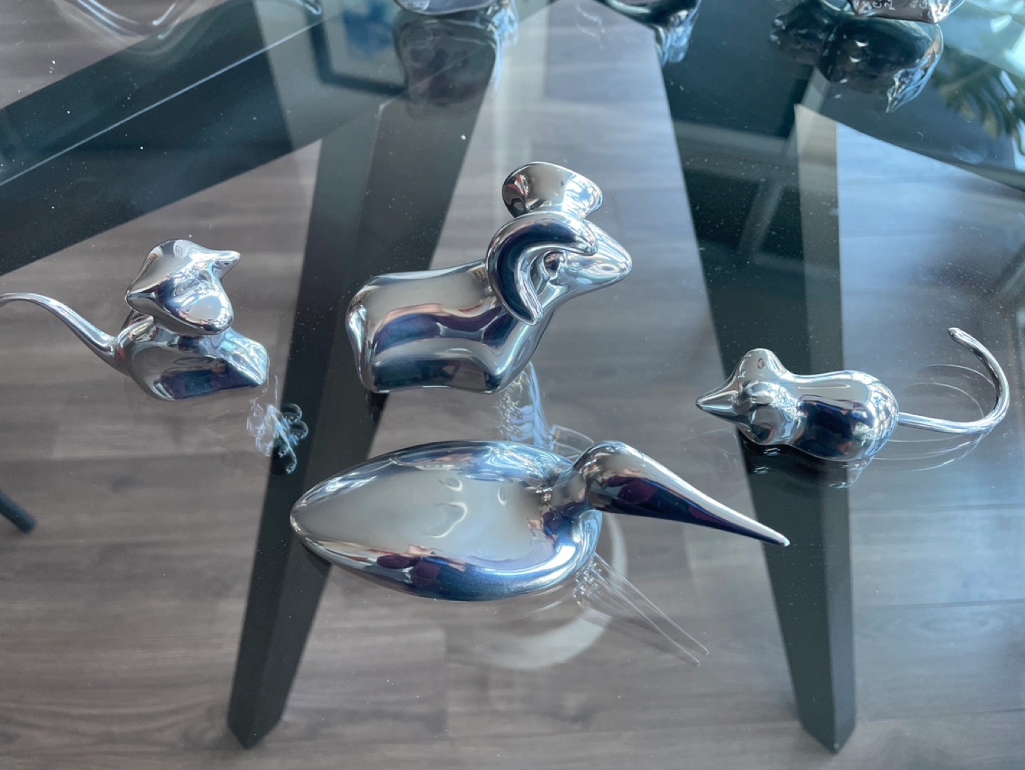 Silver-tone animal figurines.
