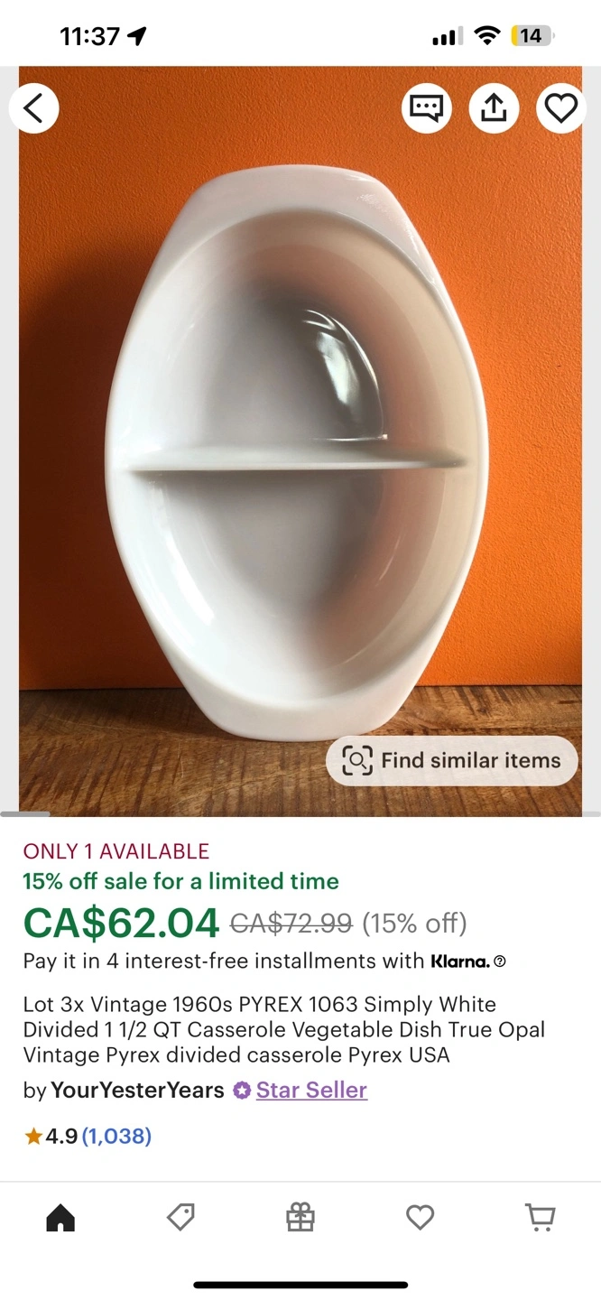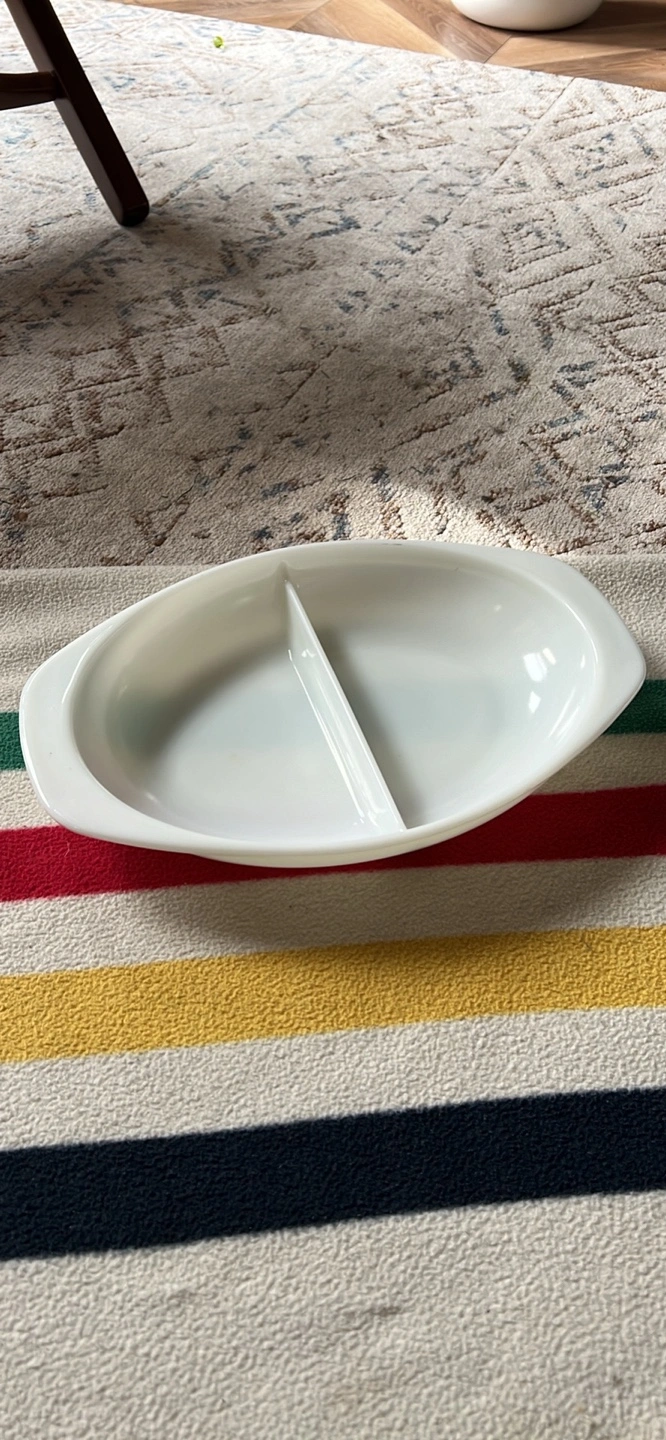 75Vintage 1960s PYREX 1063 Simply White Divided 1 1/2 QT Casserole Vegetable Dish. True Opal Vintage Pyrex divided casserole.