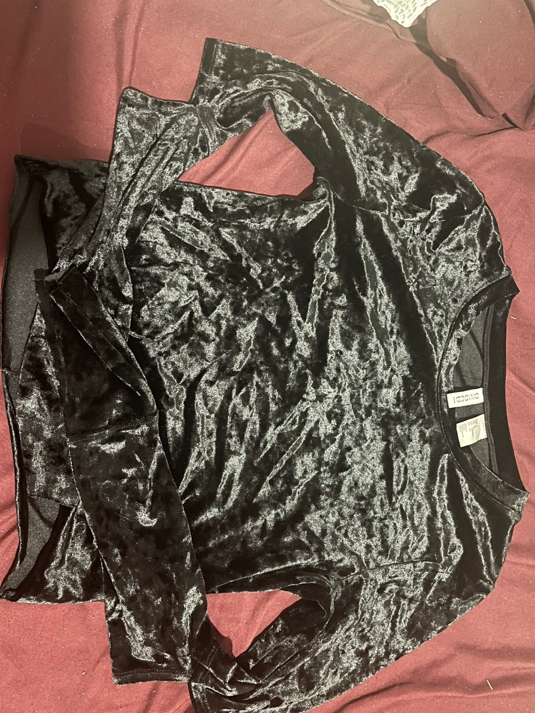 268Long sleeve top in black velvet. Crew neck. Elbow cut. Drop me a message if need more pics :)