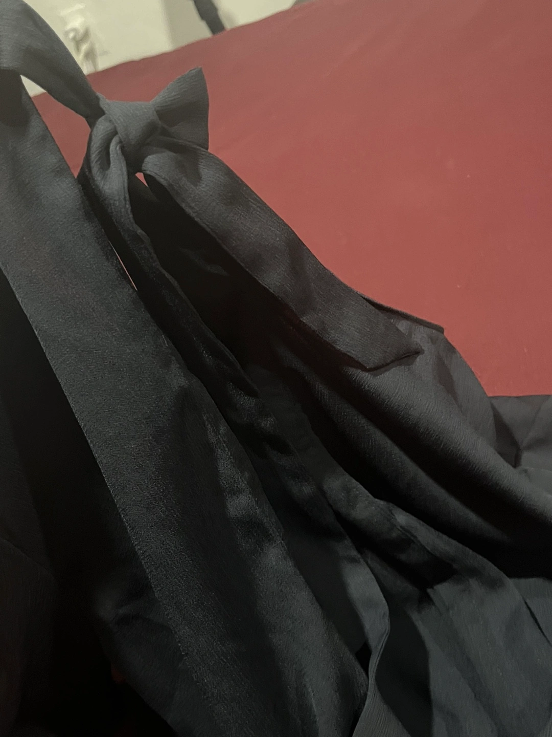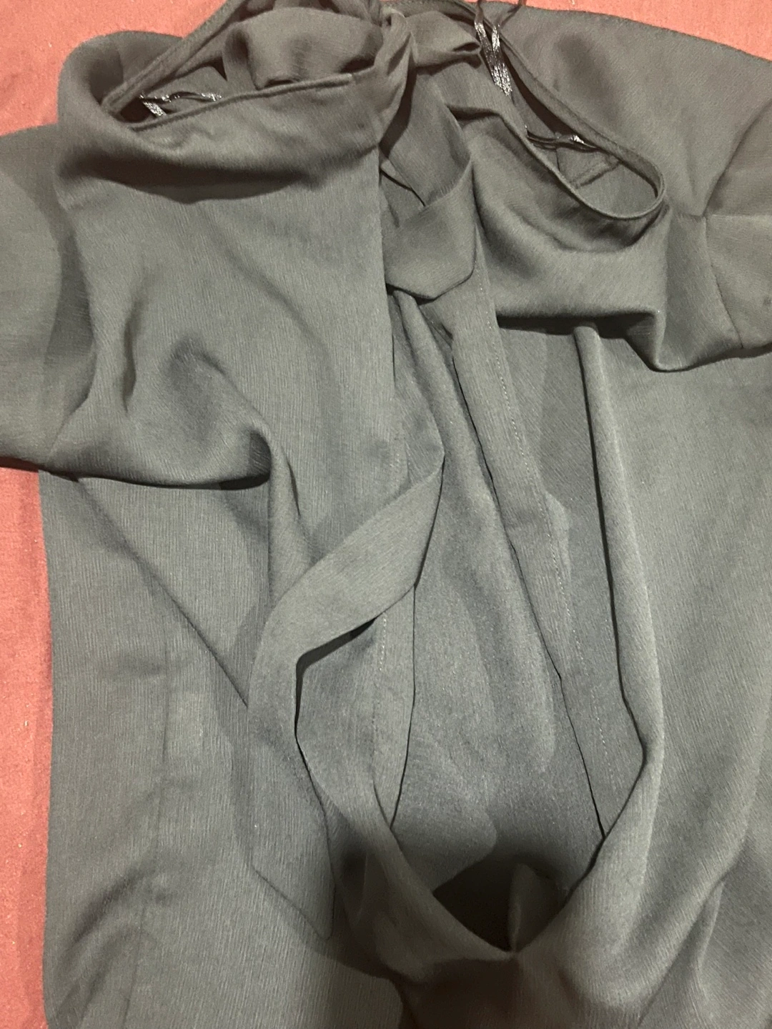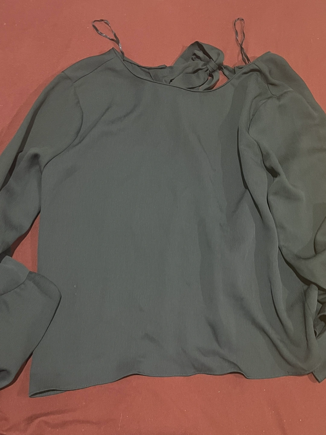 268Long sleeve blouse with a tie back. The fabric is thin and flowy.