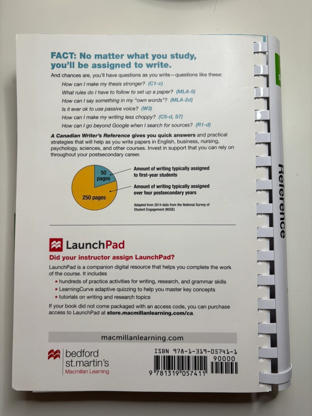 132Seventh Edition of A Canadian Writer's Reference by Diana Hacker and Nancy Sommers. Like new.