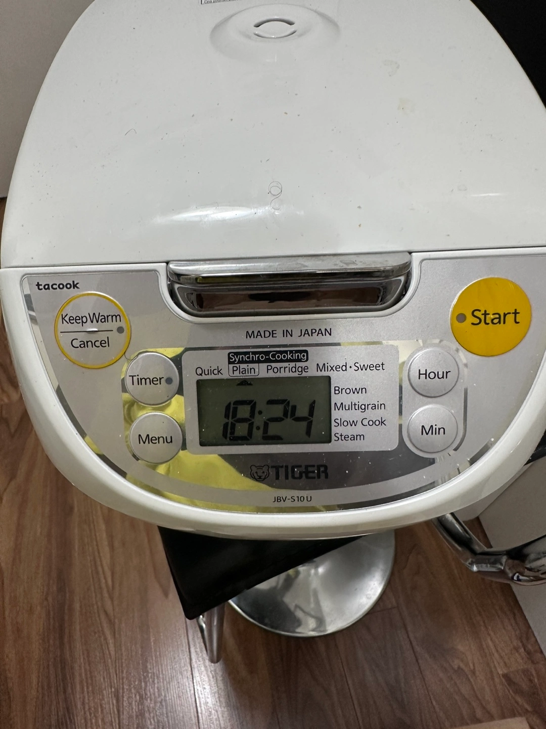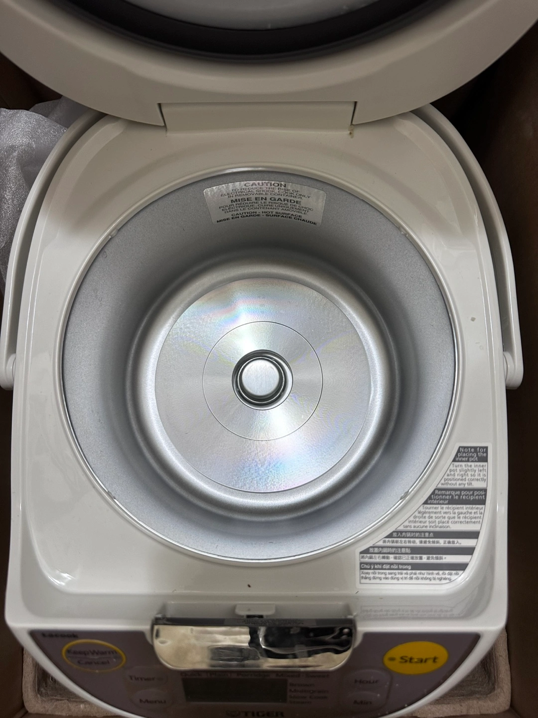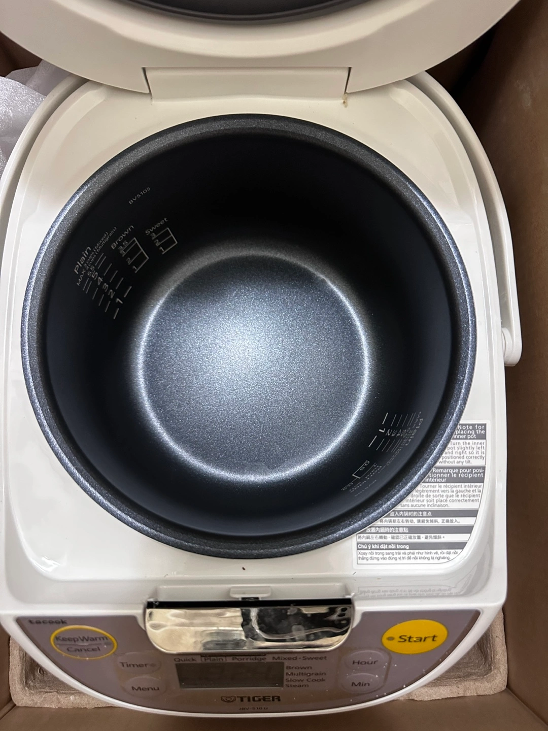 5.5-cups (uncooked) rice cooker / warmer. Features a keep warm and timer function. Includes an inner cooking pot and a steam tray.