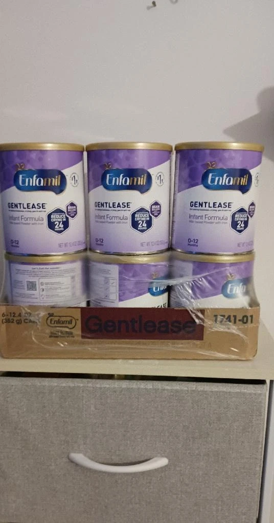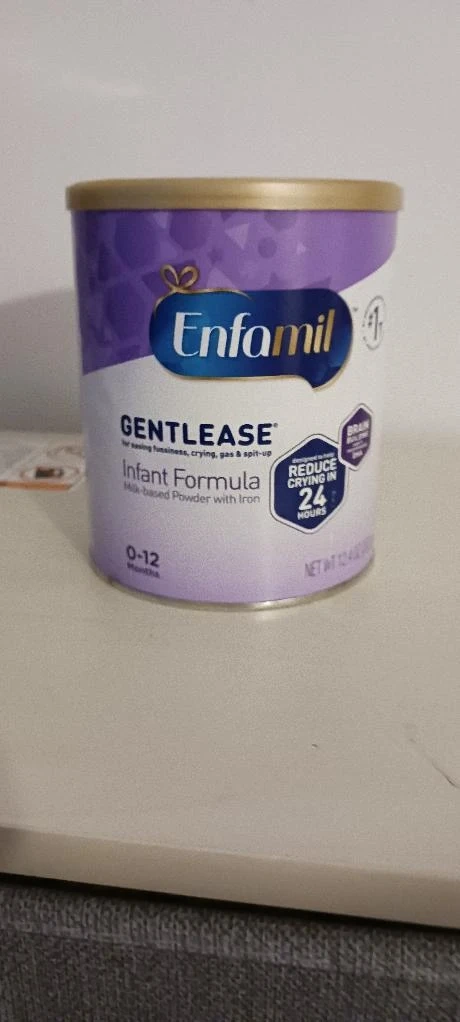 Enfamil Gentlease infant formula is a milk-based powder designed for babies 0-12 months. It's formulated to help reduce fussiness, crying, gas, and spit-up. Each can contains 12 oz of powder.
