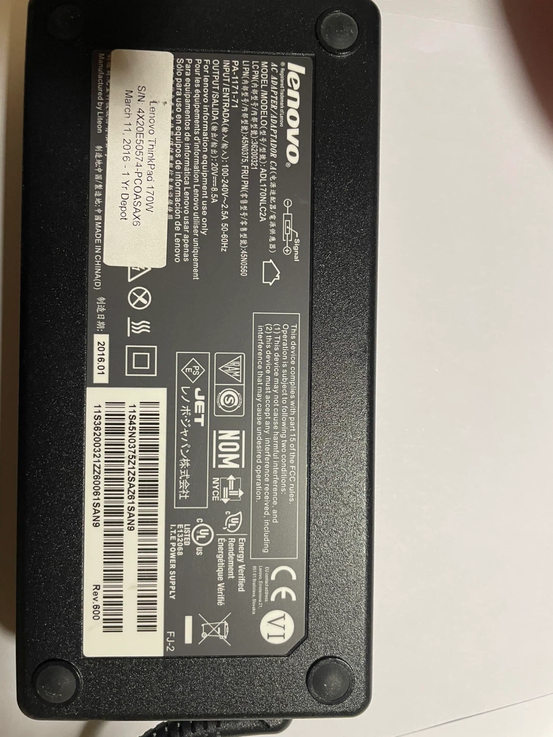 Lenovo ThinkPad 170W AC Power Adapter.